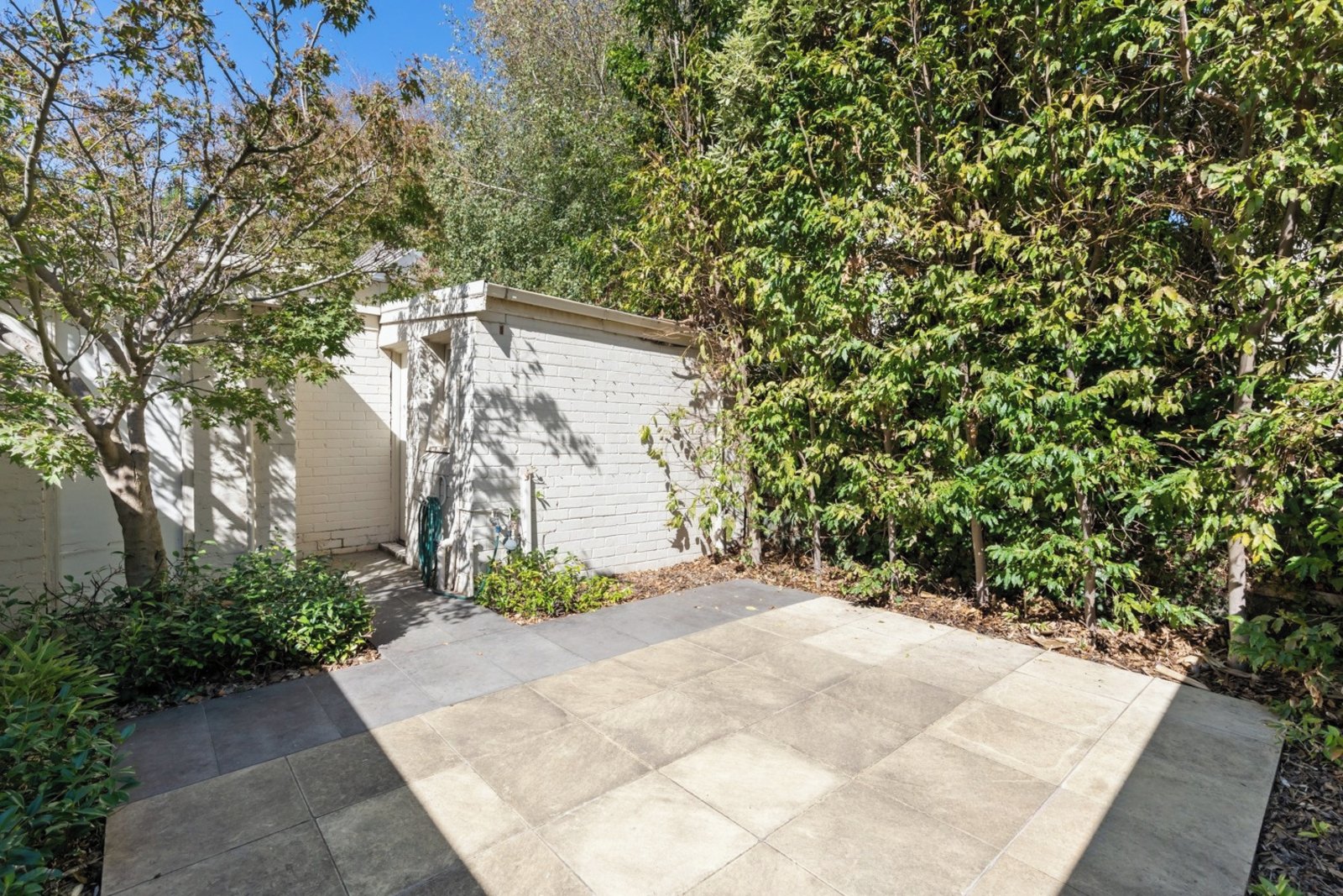 Includes heating/cooling, double remote garage, sunny courtyard and storage shed.