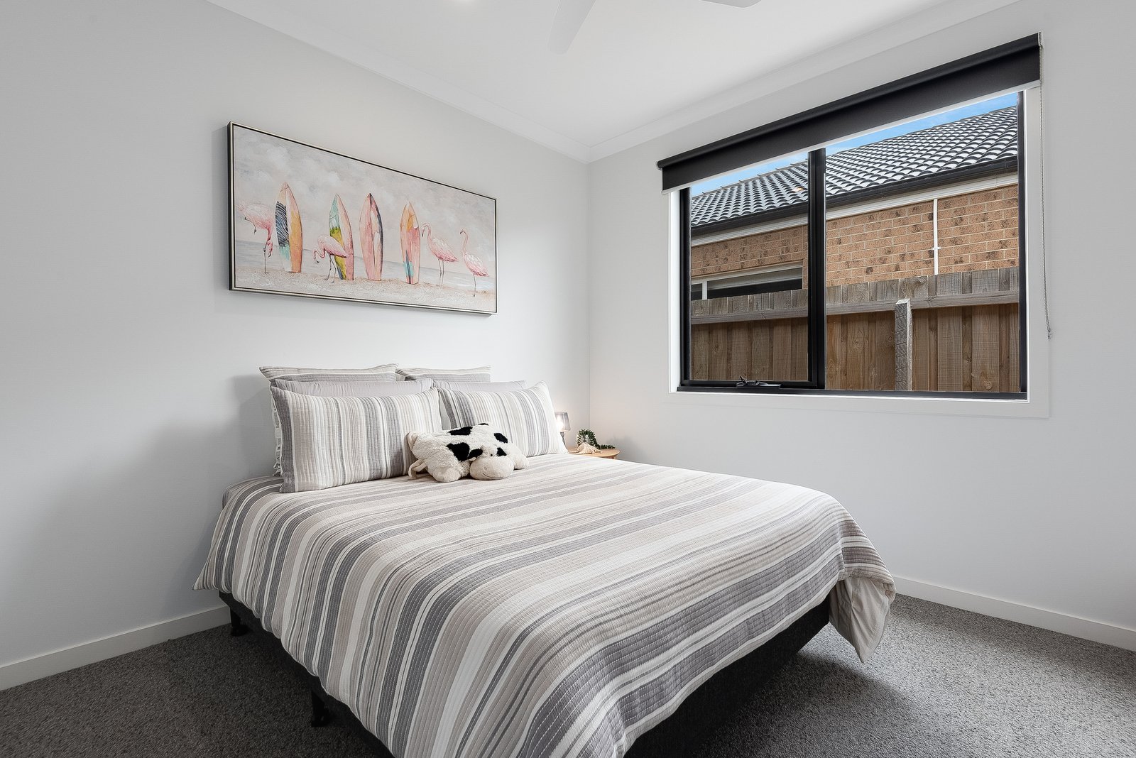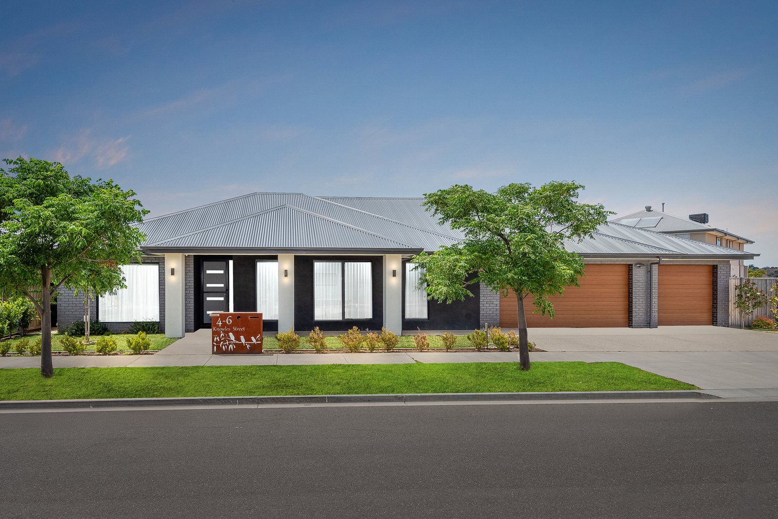 Outside offers a selection of spaces to play, relax or wine and dine outdoors. Two separate alfresco areas both connect with the main living for easy indoor-outdoor entertaining, a firepit offers a cosy space to gather with family and friends, there’s a lush lawn area for the kids to play, and bordering hedges create a private and tranquil environment. The triple garage includes rear pedestrian and roller door access to the alfresco, and a shed at the rear facilitates additional outdoor storage.