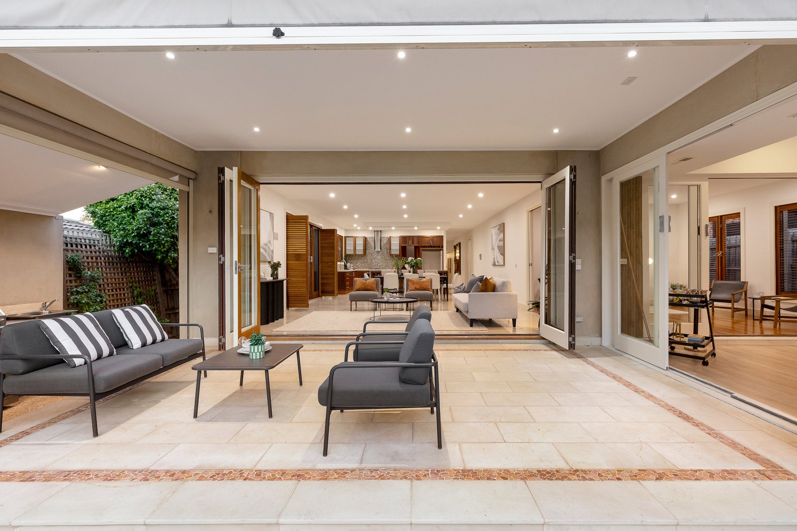 Outside, there are places to relax, dine & entertain in either the sun or in the shade – including a fabulous sheltered alfresco terrace - while the sanctuary-like back yard is exceptionally private and offers plenty of room for children and pets to play.