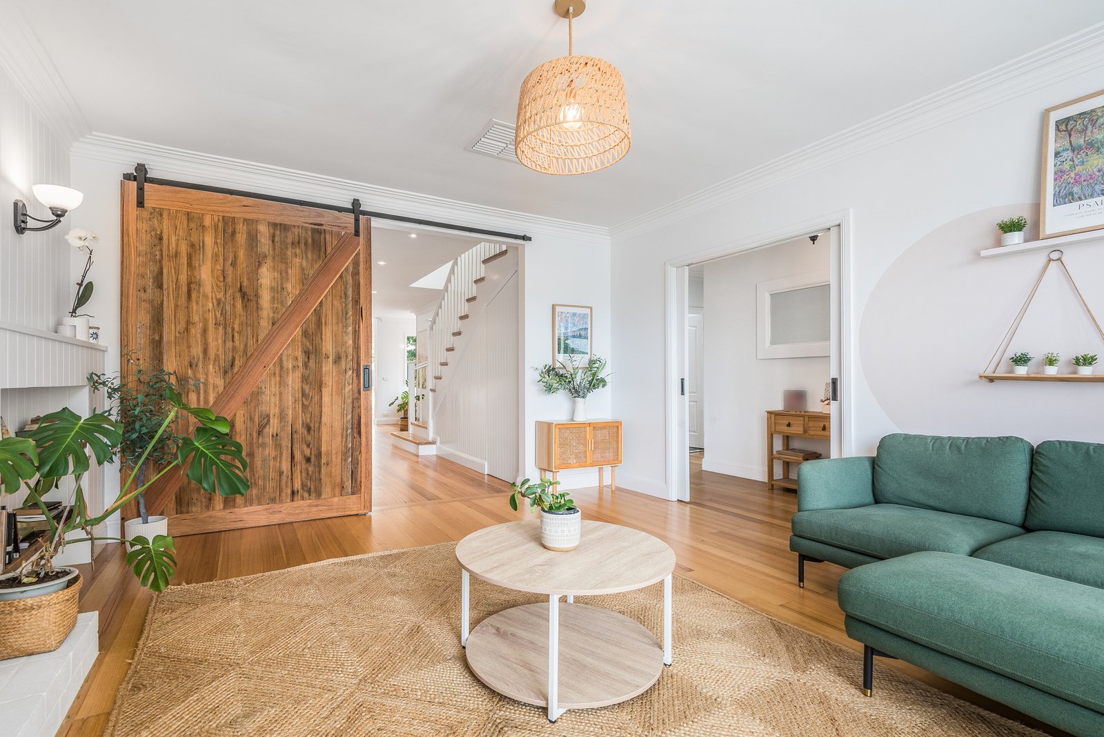 Set amongst magnificent manicured gardens, the two storey façade is timeless in style, with a beautiful vine covered verandah introducing the captivating theme of the home. From the entry, double doors lead into a sophisticated formal lounge featuring polished timber floors, pendant lighting, ornate cornice, classic wall paneling, built in bookshelves and plantation shutters, offering a tranquil space to retreat with a picturesque garden outlook. A beautiful barn door connects with the rear living quarters, allowing you to close off for peace and privacy, or open up for effortless flow.