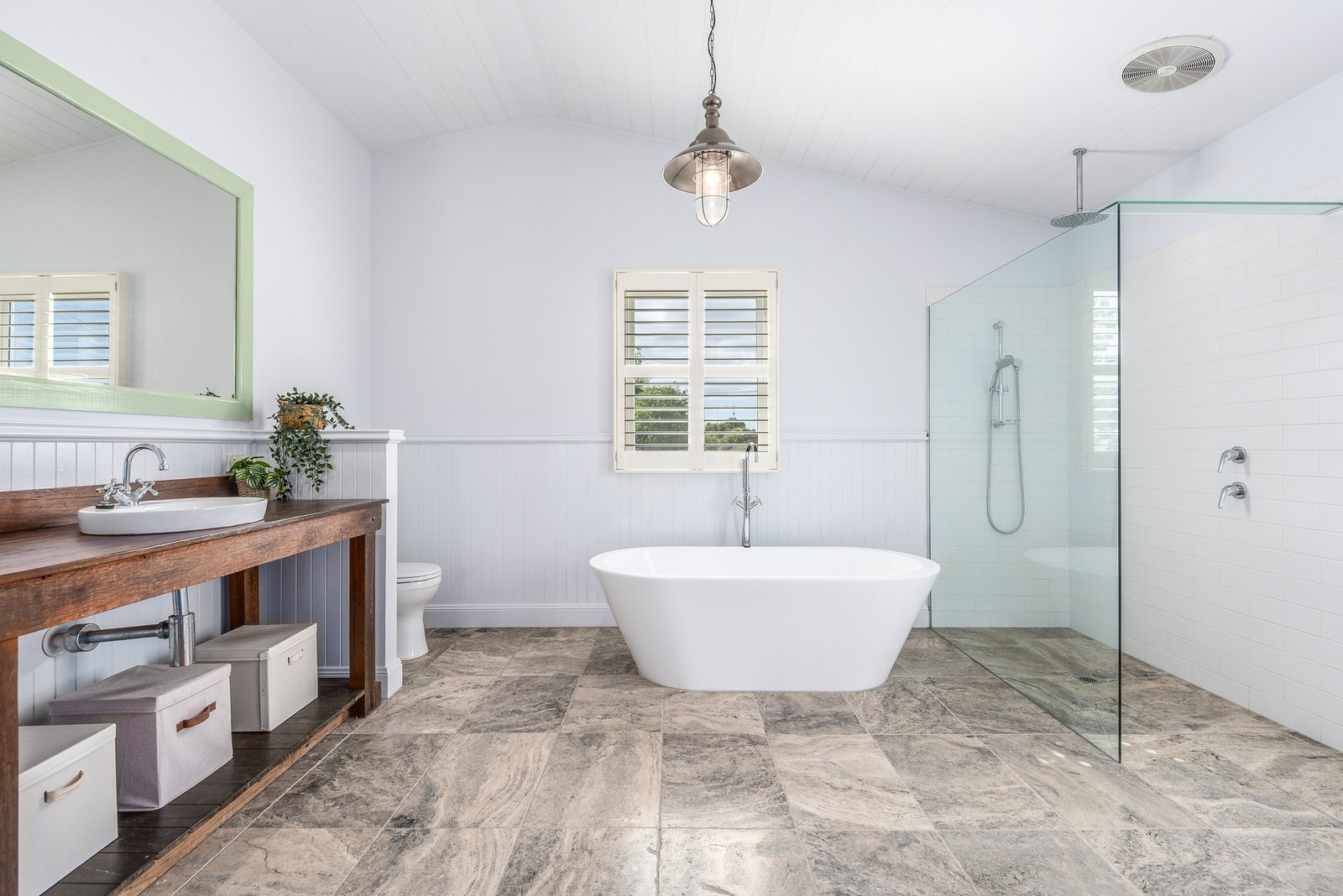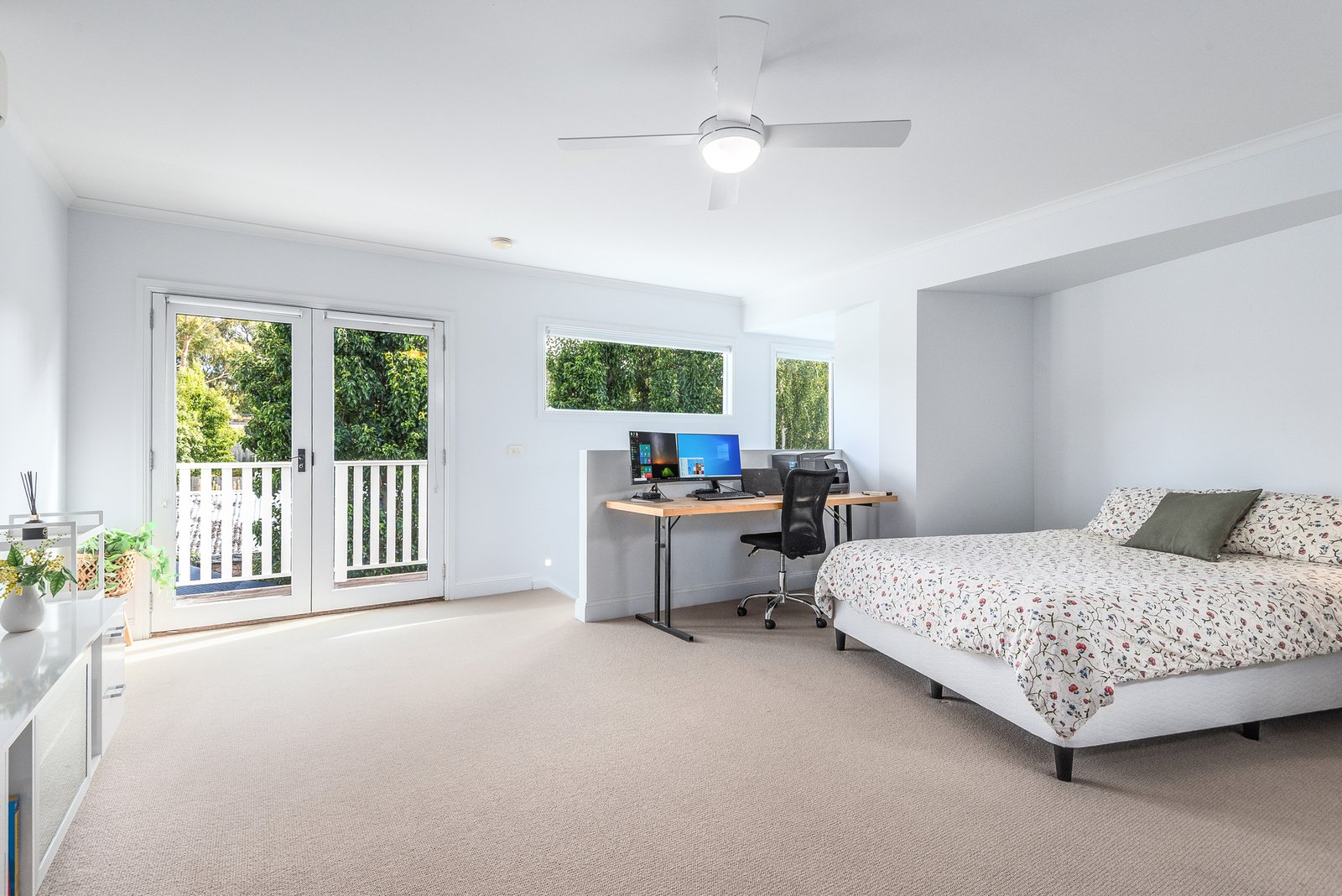 The luxurious main bedroom occupies the first floor, offering a privately zoned retreat with vaulted ceilings, split system heating and cooling, ceiling fan, bedside pendants, generous walk-in robes, and a spectacular open plan ensuite featuring a frameless walk-in shower with dual shower heads, freestanding bath, timber vanity, and linen storage. Three bedrooms on the ground floor are serviced by a tastefully presented family bathroom, and a fifth bedroom above the garage includes a private balcony, split system heating and cooling, ceiling fan, walk-in robes and a modern ensuite, the ideal teenager’s retreat or guest room.