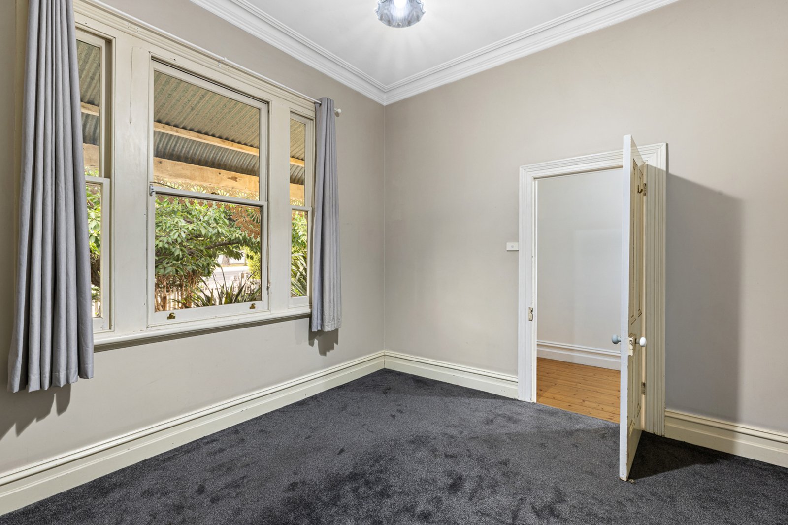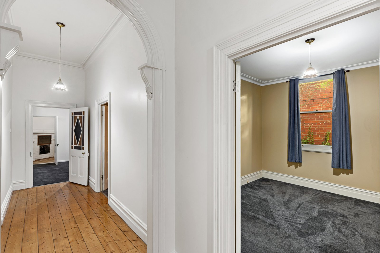 High ceilings, decorative cornices and timber flooring through the hallway highlight the home’s Victorian charm, while modern comforts such as a reverse-cycle split system provide year-round heating and cooling. Outside, the property includes a garden shed, single car accommodation and ample space to enhance the existing footprint or extend at the rear (STCA).