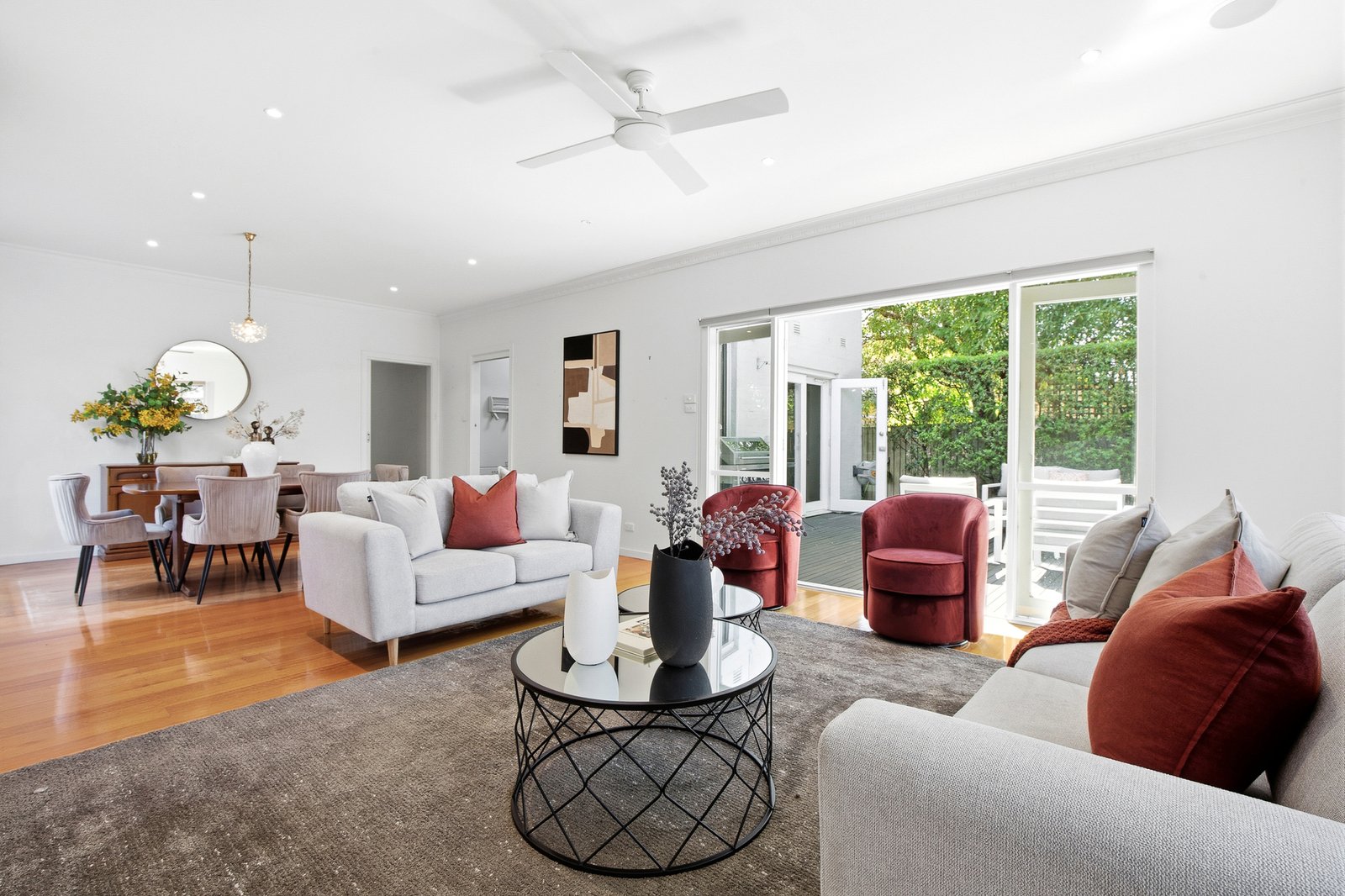 Indoor-outdoor entertaining sits at the heart of the design, with multiple living areas opening to a large rear garden. A relaxed family lounge and meals zone is complemented by a beautiful formal living and dining room, while a bright open-plan kitchen connects seamlessly to each space. Both living zones extend to a vast al fresco deck, perfectly oriented to enjoy the leafy, private backyard.