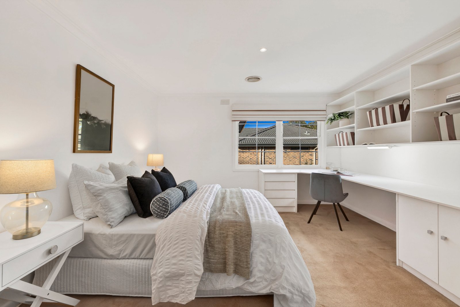 Extensive fitted storage and desks throughout