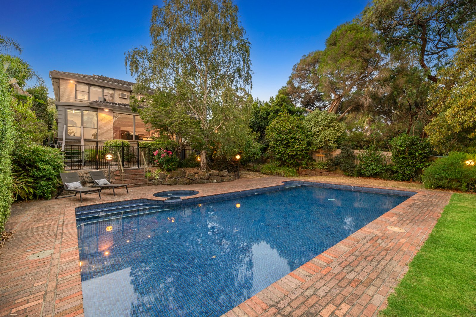 Fenced solar heated saltwater pool and spa
