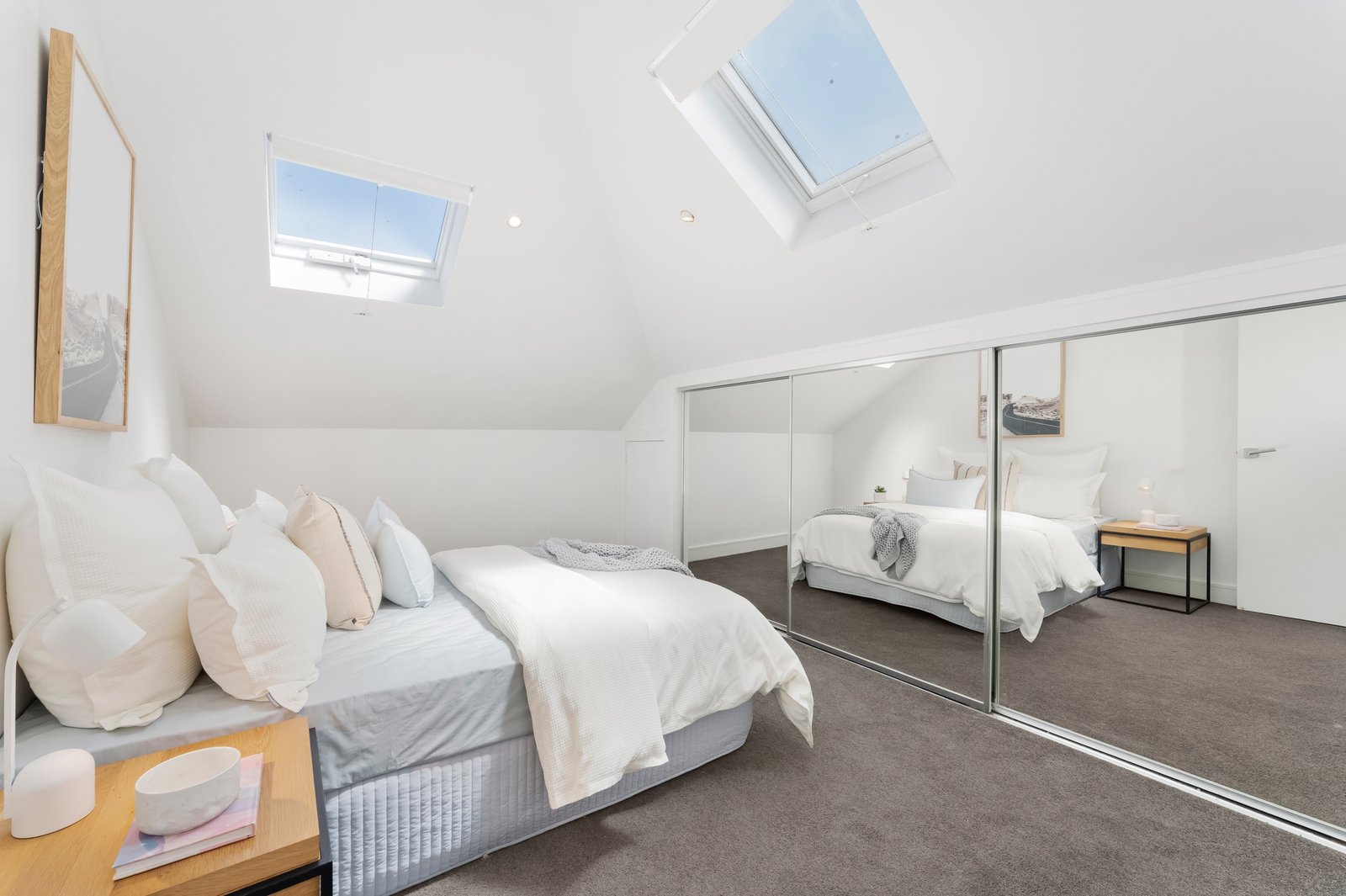 Comprehensive features include off-street parking for two cars, substantial storage solutions including a large shed, laundry capability, and a handy full-sized bathroom with a dual shower on the ground floor. Take advantage of newly sanded timber flooring, heating/cooling upstairs and down, numerous Velux skylights, and so much more.