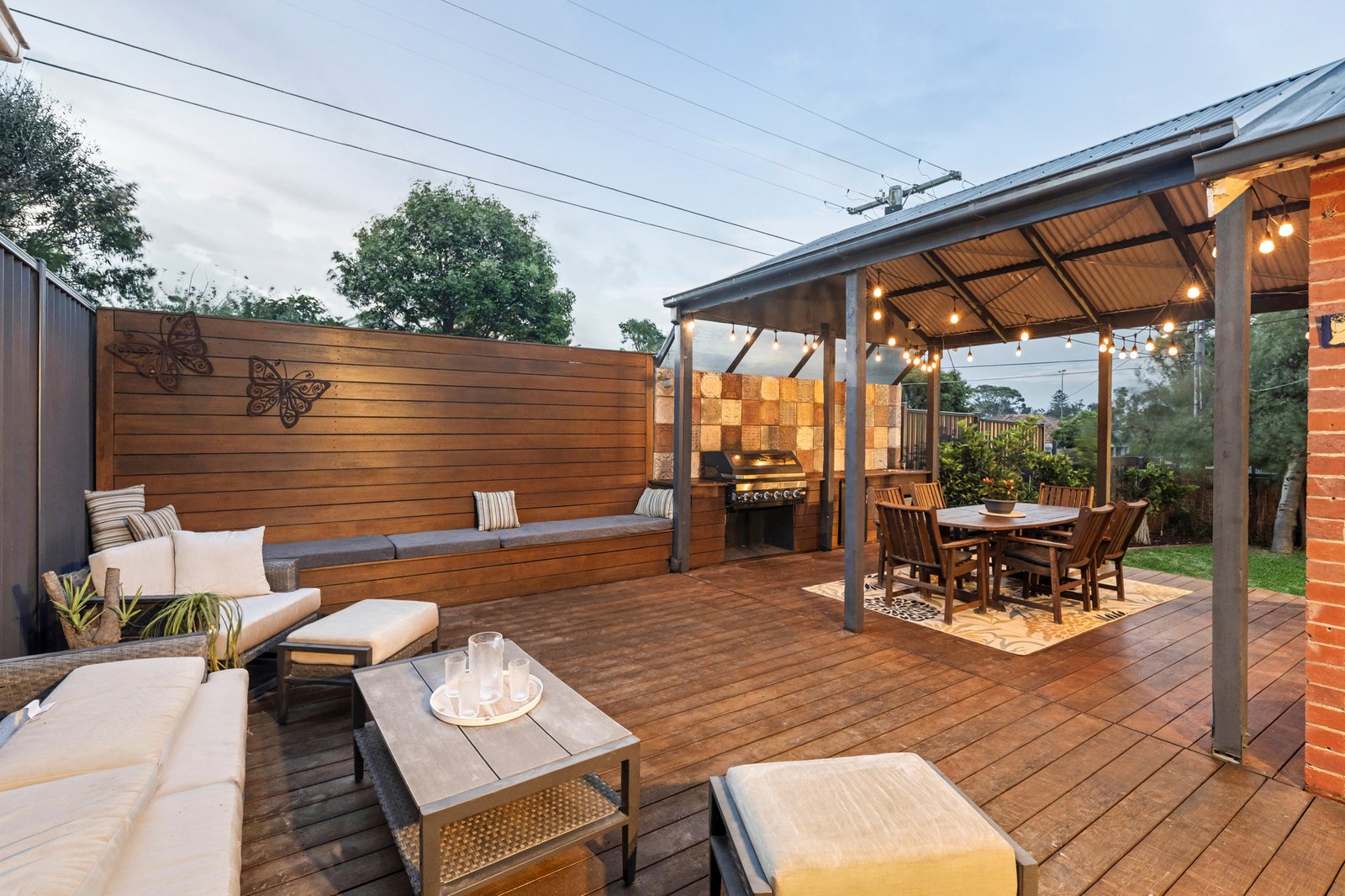 The heart of the home is an expansive open-plan living and dining area that seamlessly connects to a large outdoor entertaining deck and covered alfresco zone with built-in barbecue. The kitchen has been thoughtfully designed with abundant storage, a substantial island bench, dishwasher, large oven and cooktop, and flows directly to the deck, making it ideal for everyday living and entertaining. Timber flooring runs throughout the home, enhancing continuity and warmth across all living spaces.