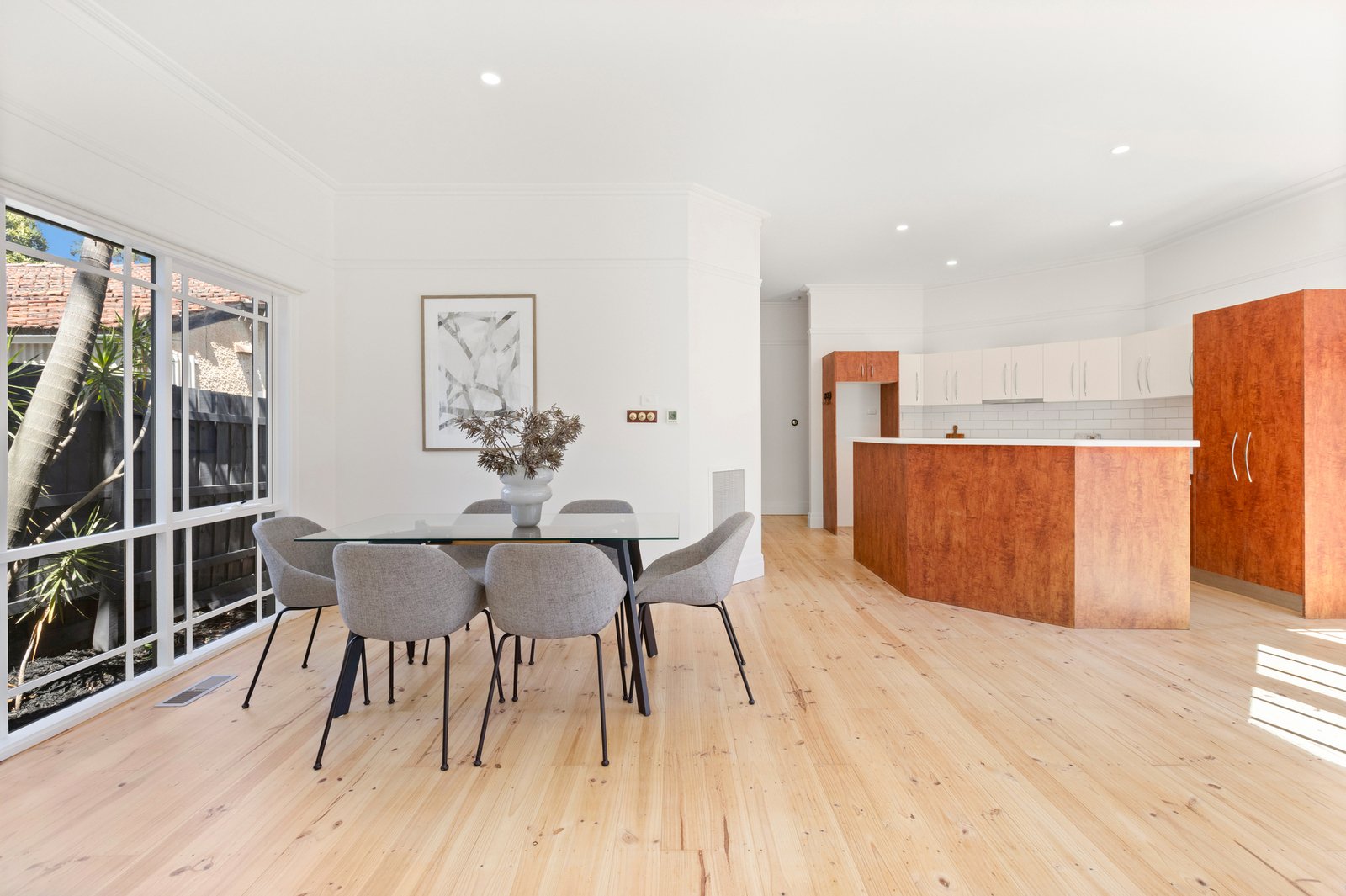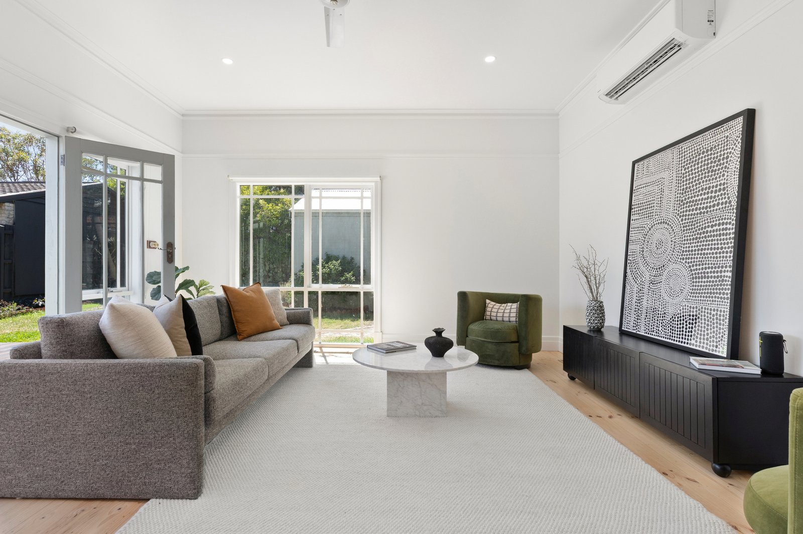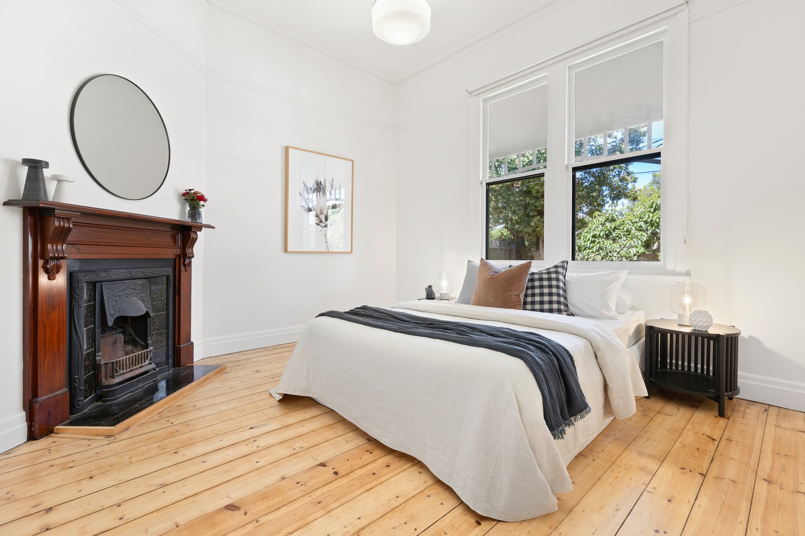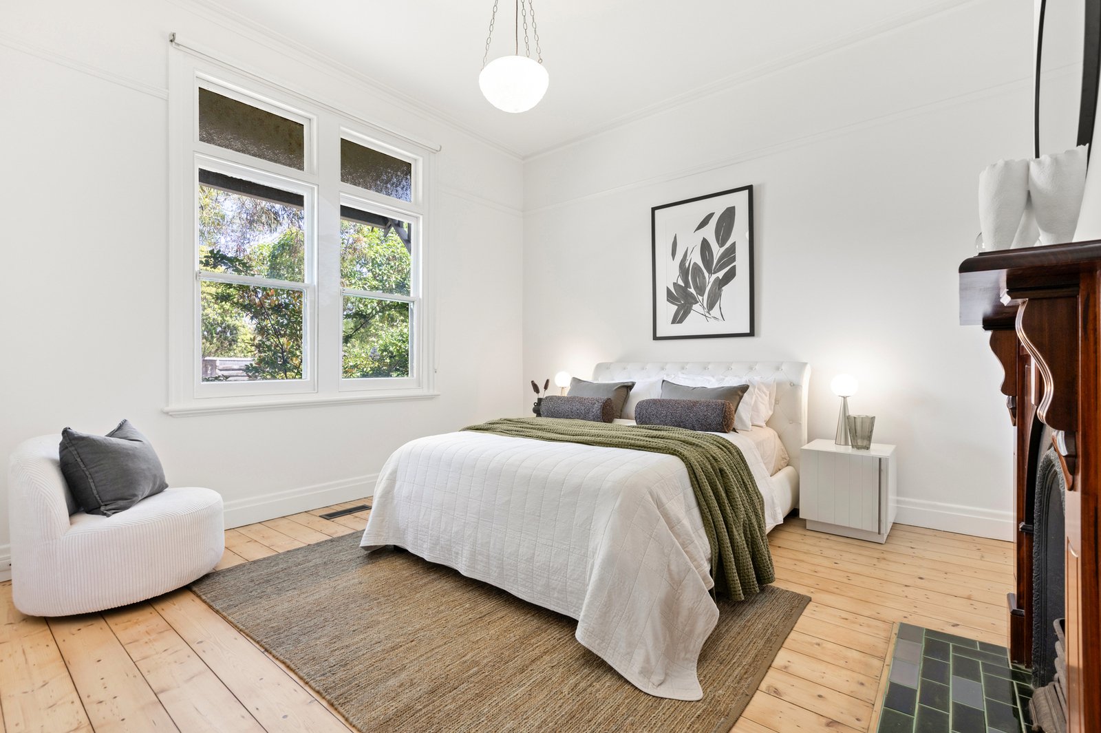 Thoughtfully updated for contemporary comfort while celebrating its original character, the four-bedroom, two-bathroom home reveals a charming façade adorned with timber fretwork and a leadlight entry. A wide central hallway rises beneath soaring 3.3-metre ceilings, complemented by newly sanded Baltic pine floorboards that bring a fresh, modern feel to the classic interiors.