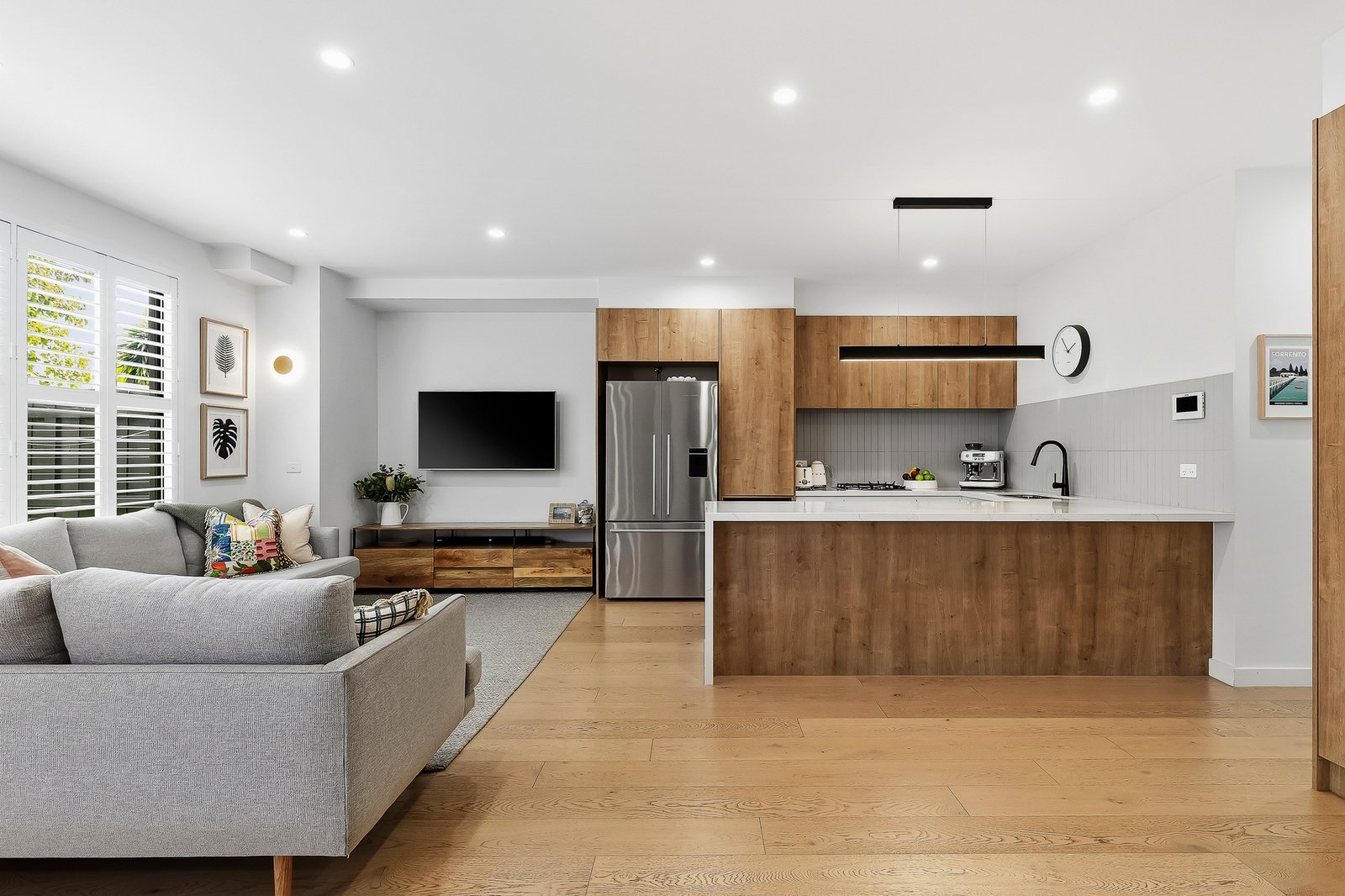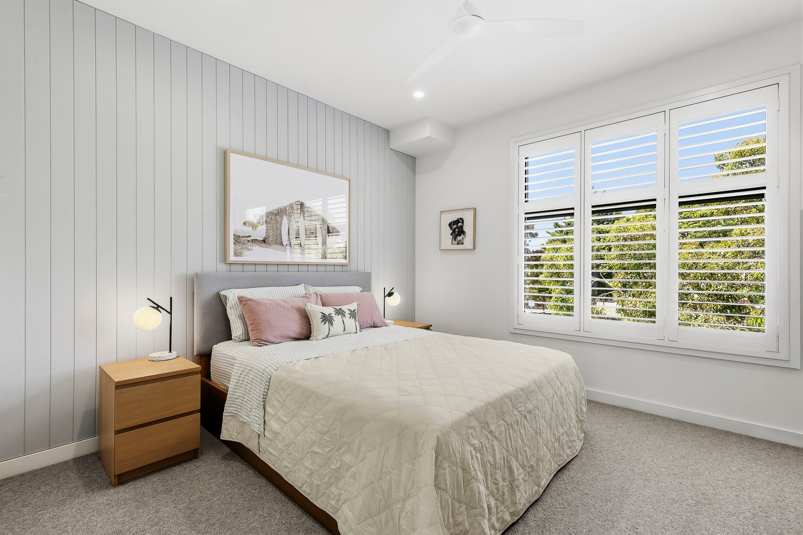 Perfectly positioned just minutes from the beach, this stunning 4-bedroom, 3-bathroom plus study residence is turnkey and lifestyle ready. Enjoy the convenience of buses at your doorstep, plus golden stretches of sand and schools, cafes and the station all within a leisurely stroll. Step inside and immerse yourself in contemporary style with plantation shutters and VJ wall panelling, engineered timber flooring, custom cabinetry, soft floating sheers and premium wool carpet. Spacious open-plan living and dining is bathed in beautiful natural light through large windows, overlooking the garden and complemented by a designer stone kitchen with stainless steel appliances. Outdoors is impressively low-maintenance with artificial turf, where you'll love to entertain on the covered timber deck amongst private and peaceful surrounds. Luxurious accommodation includes an upstairs master ensuite bedroom with walk-in robe and tranquil leafy vistas, along with two generous robed bedrooms sharing the family bathroom. The fourth bedroom and third bathroom are enviably located downstairs. Sleek floor-to-ceiling tiling and matte black tapware star in all three bathrooms, while a versatile skylit study or extra sitting area on the upper level is fitted with custom cabinetry offering extensive storage. Complete with solar panels, split systems and ceiling fans throughout (including all bedrooms), this coastal sanctuary is finished with a pet door, internal entry remote garage and driveway parking.
