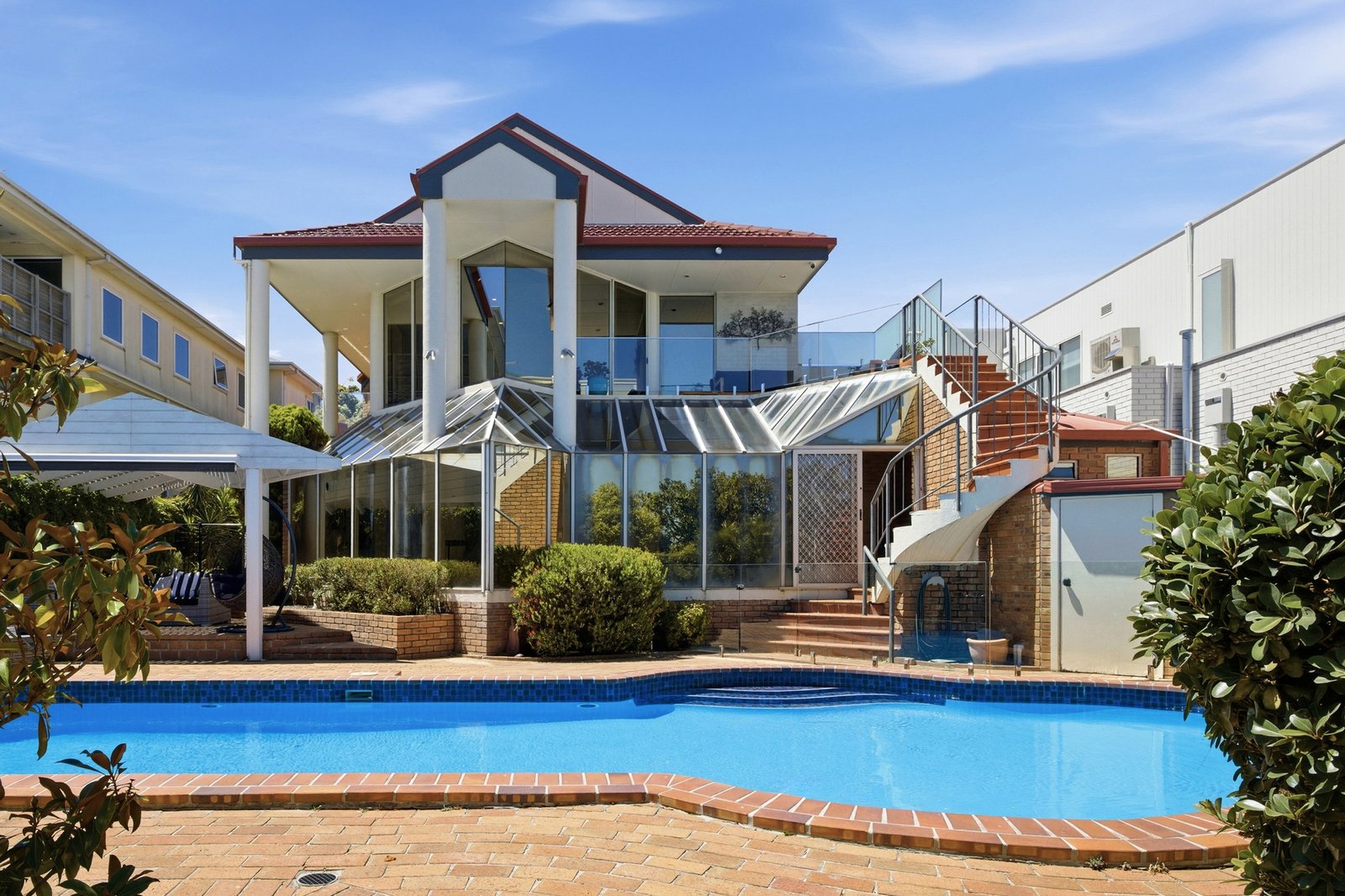 Rising above a lofty three-car garage with relaxed kitchen casual/dining (with a bonus peninsula-view) and principal living reaching out to the bay with a pillarless feature-window, this breathtaking home steps out with an external stair to a conservatory-style entertainment zone (with BBQ kitchen) and split-level family living ...and steps out to a shady pavilion by the heated pool.