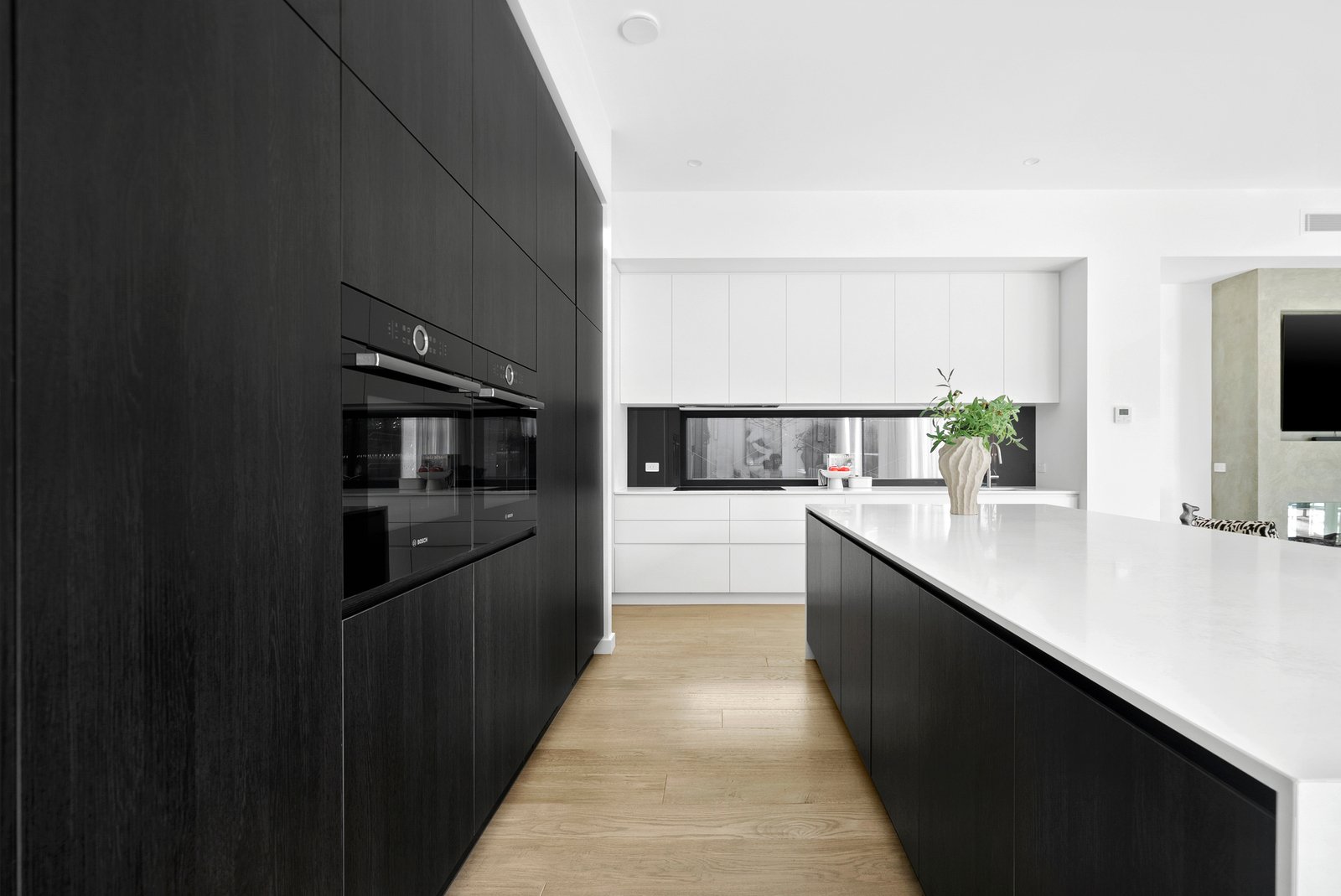 Presiding over the living zones, the kitchen is a centrepiece of both beauty and function, where a vast waterfall island, premium Bosch appliances including dual ovens, induction cooktop and dishwasher, integrated Miele refrigeration and a storage-rich butler’s pantry combine in a space designed to perform as well as it presents.