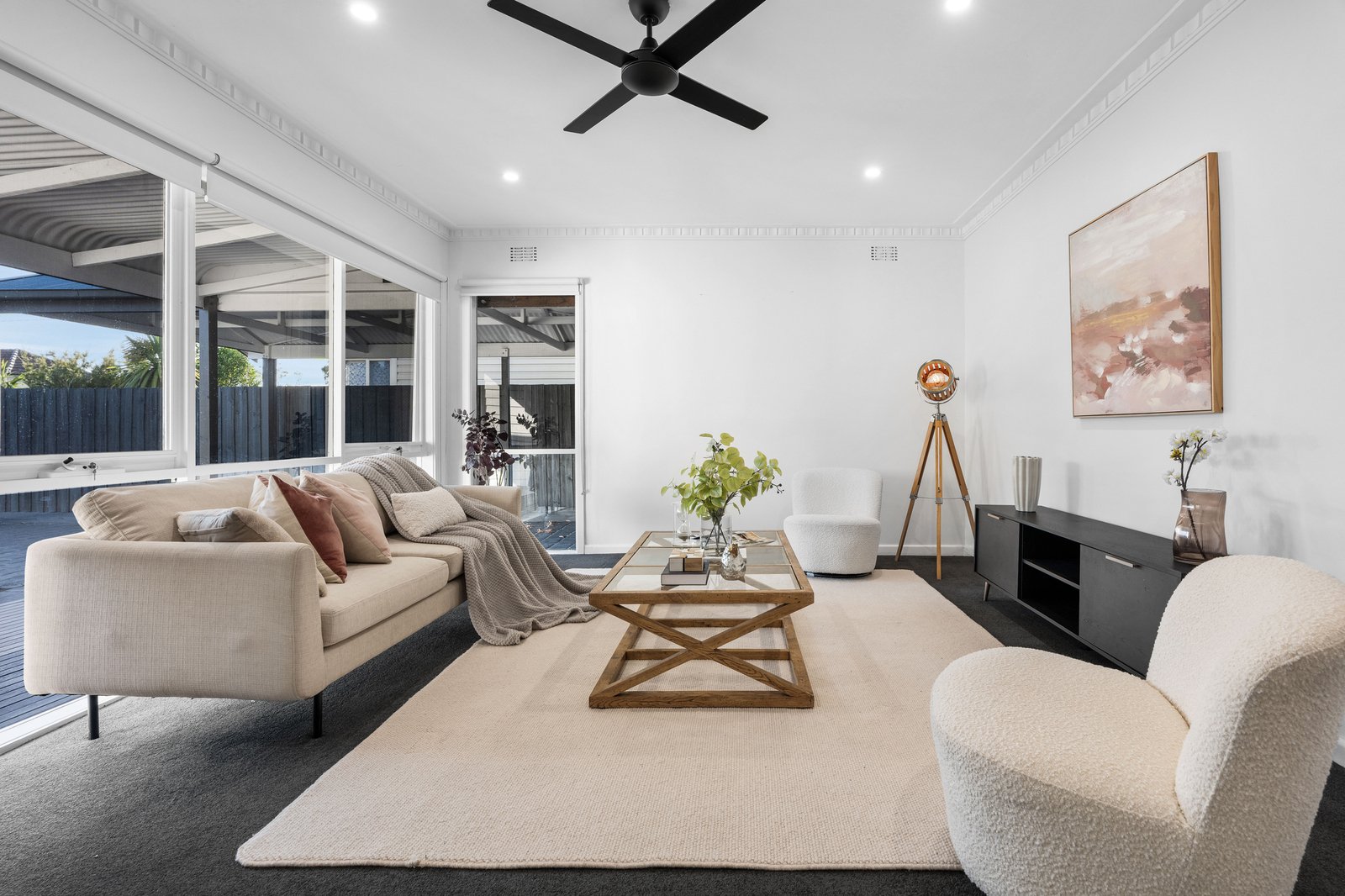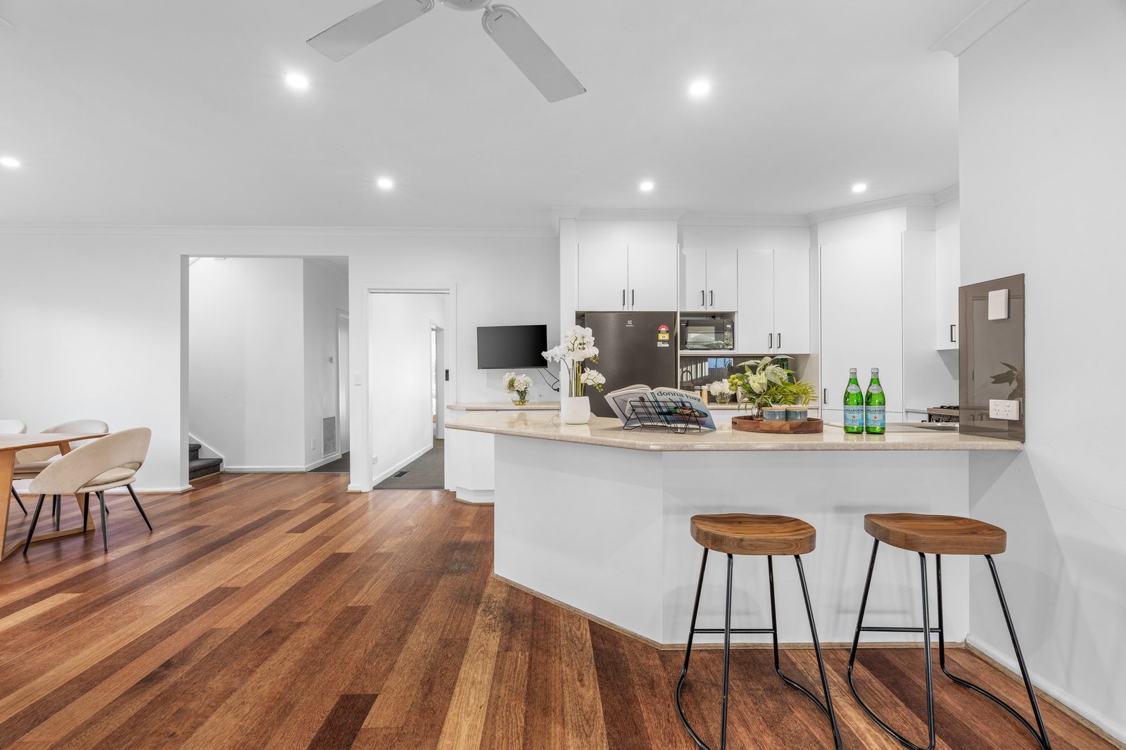 Freshly renovated, the home showcases a stylish kitchen with high-end Smeg range, designer bathrooms including a clever two-way ensuite to the master suite with private balcony, and fresh finishes throughout. Newly painted with polished floors, plush carpets, new Holland blinds and excellent storage (including built-in robes to every bedroom), the home is packed with extras such as ducted heating and cooling, ceiling fans, ducted vacuuming, and a newly installed security system for peace of mind.