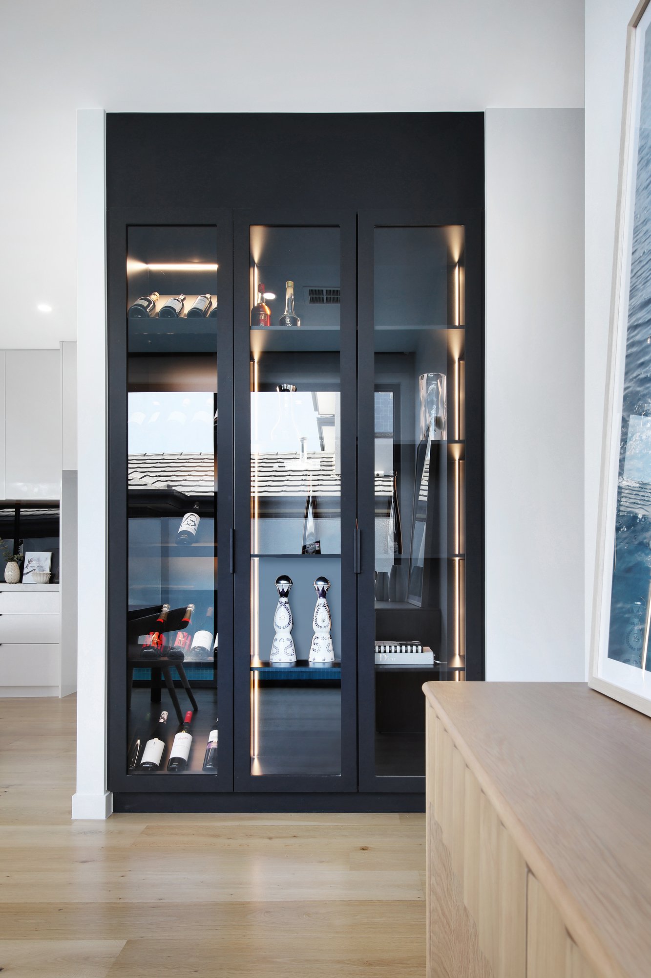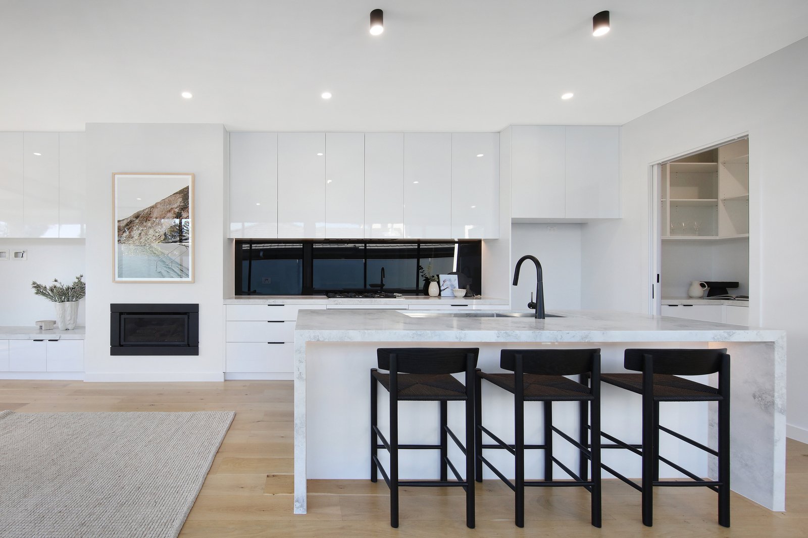 Finished to an exceptional standard, the home showcases reconstituted stone benchtops throughout — from the designer kitchen and both bathrooms to the outdoor BBQ kitchenette. The Smeg-appointed kitchen is anchored by a substantial stone dining island, complemented by bespoke ceiling-height cabinetry, mirror-finish bathroom storage and custom built-in and walk-in robes. European oak floors, exposed aggregate detailing, premium double glazing and soaring 3-metre ceilings create a refined yet durable interior environment, enhanced by ducted air conditioning, electric blinds and quality window furnishings throughout. Designed for effortless indoor-outdoor entertaining, the alfresco zone features a fully built-in outdoor kitchen with mains gas — no bottles required — delivering the functionality of a true outdoor cooking space.