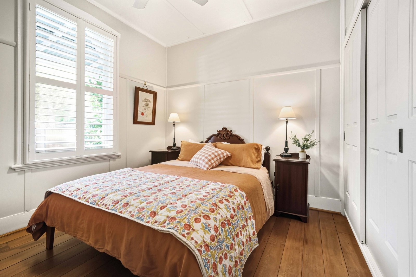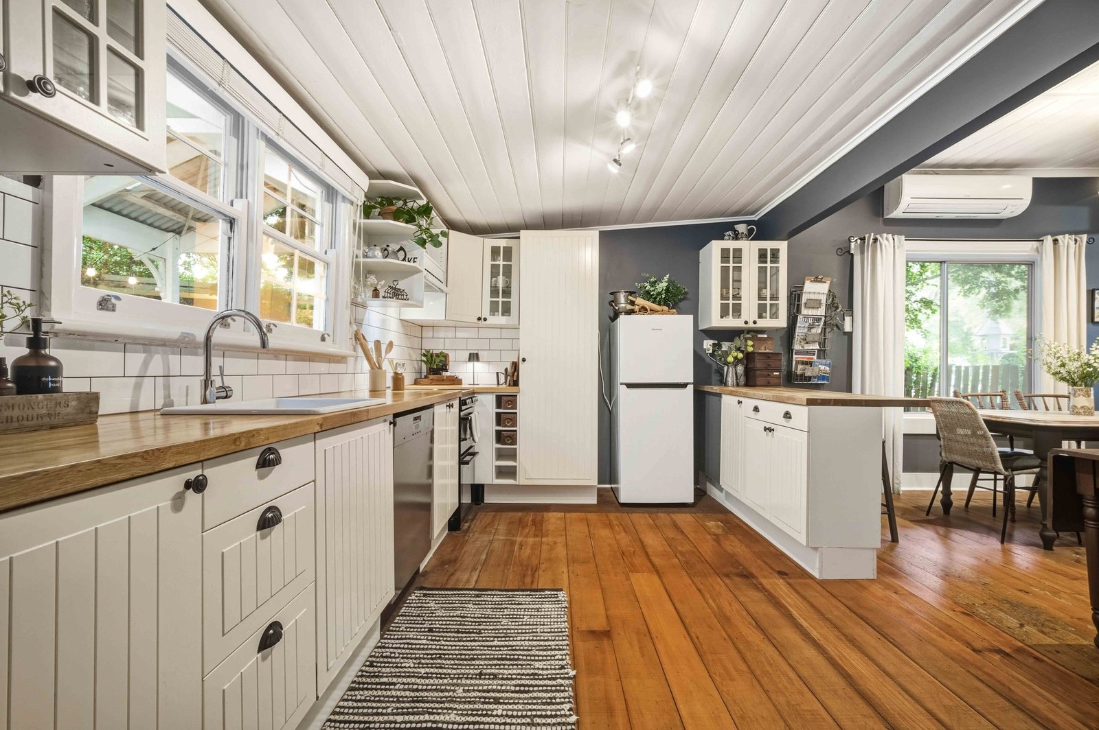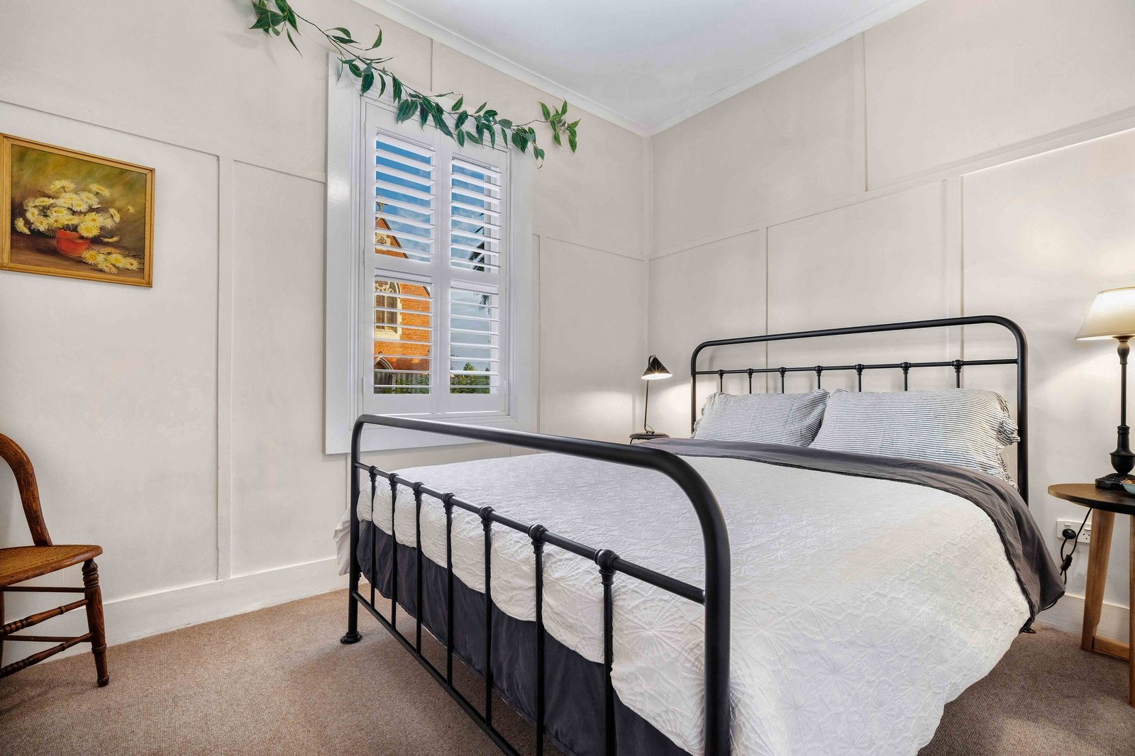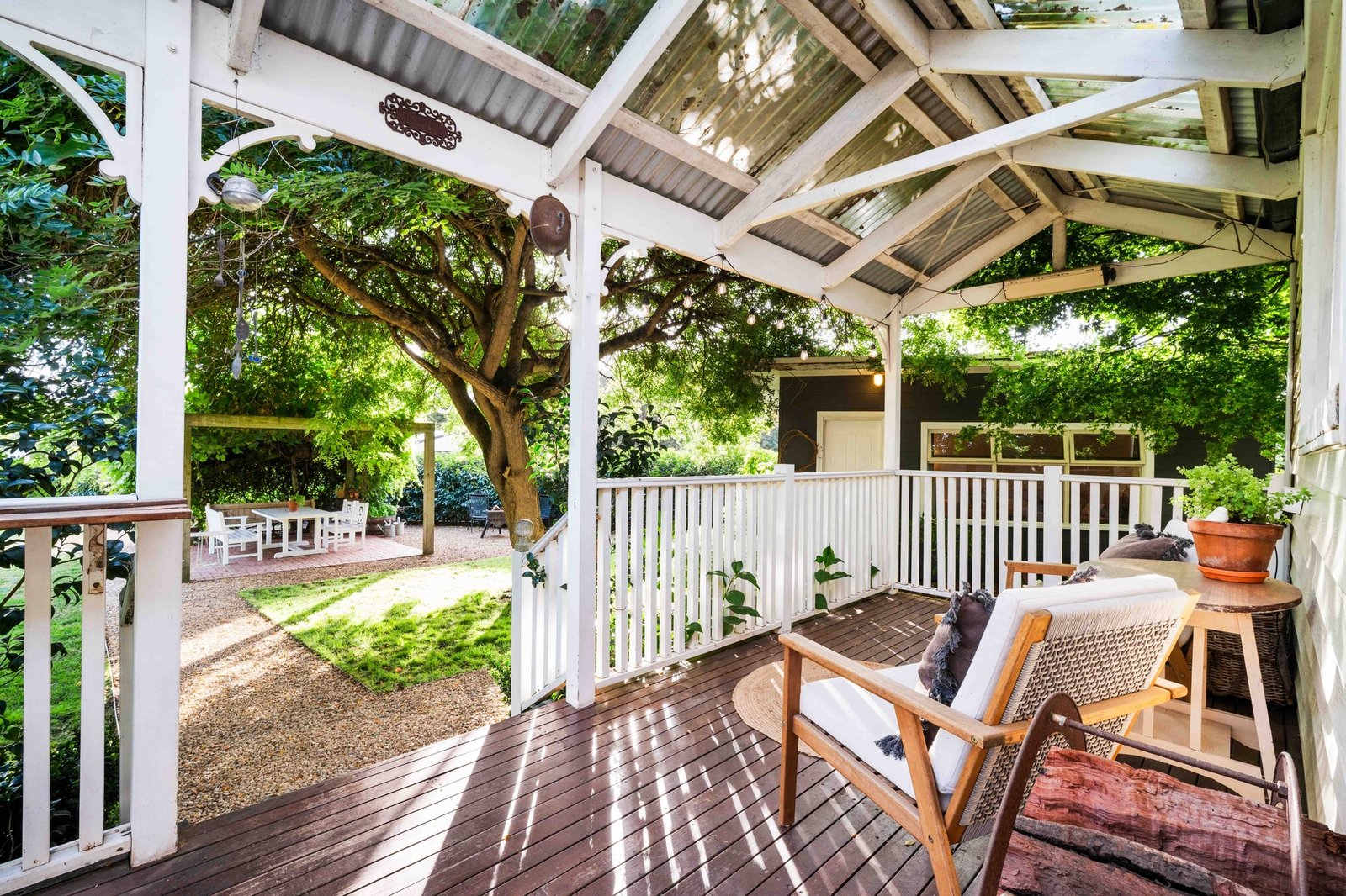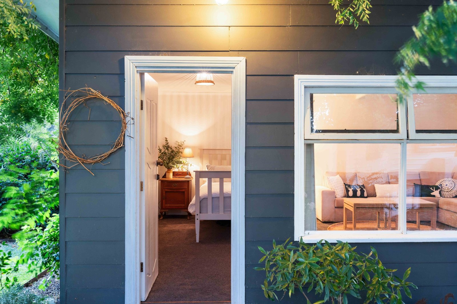 Two bedrooms sit within the main cottage, including a master with built-in robes, while a separate bungalow provides the perfect third bedroom, guest retreat or creative studio. The bathroom beautifully complements the design of the home and is complete with a freestanding bath.