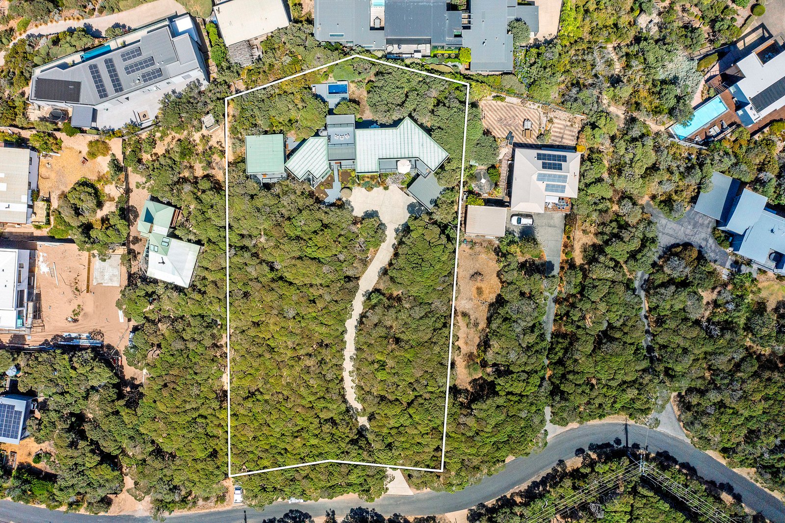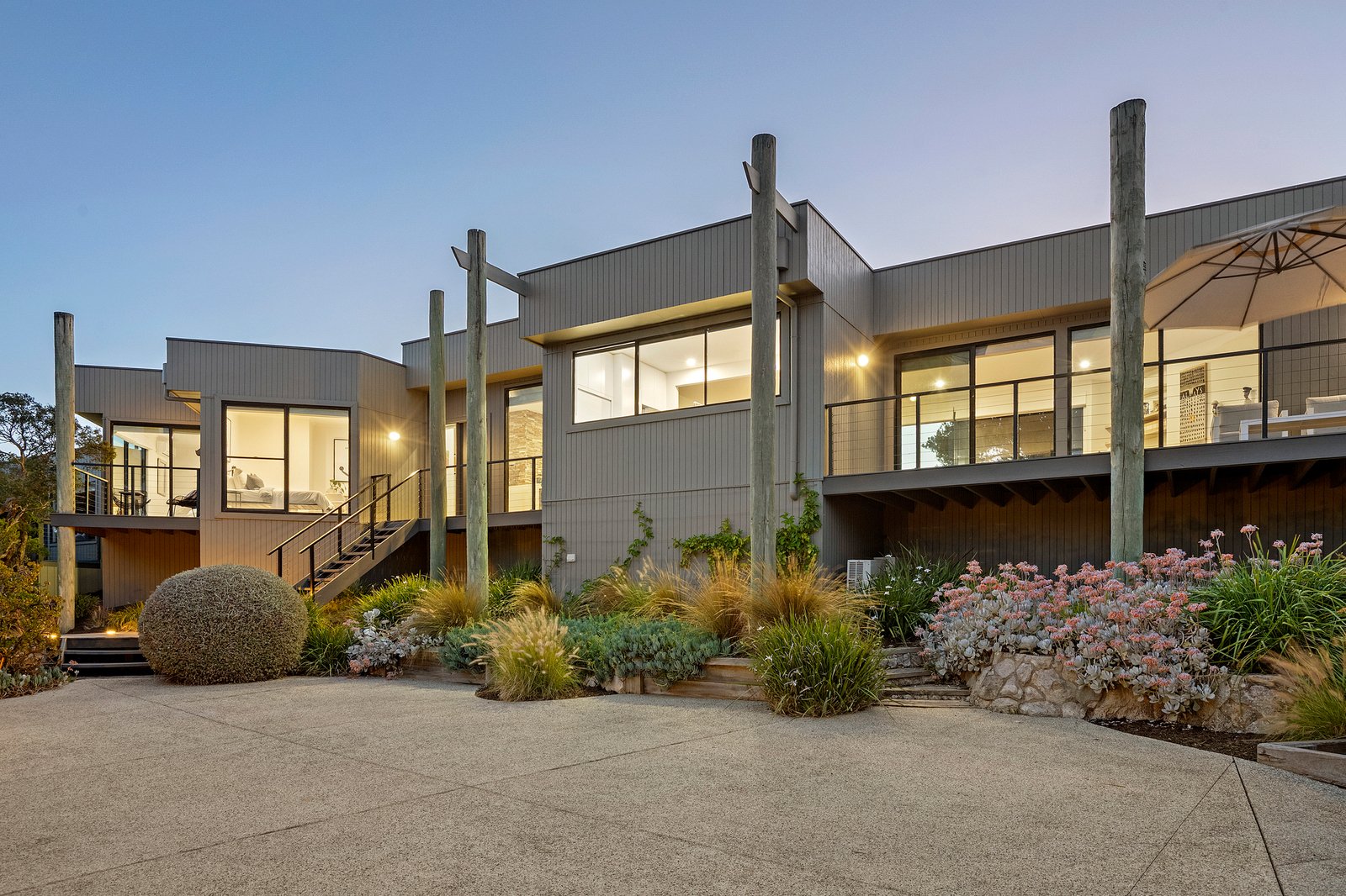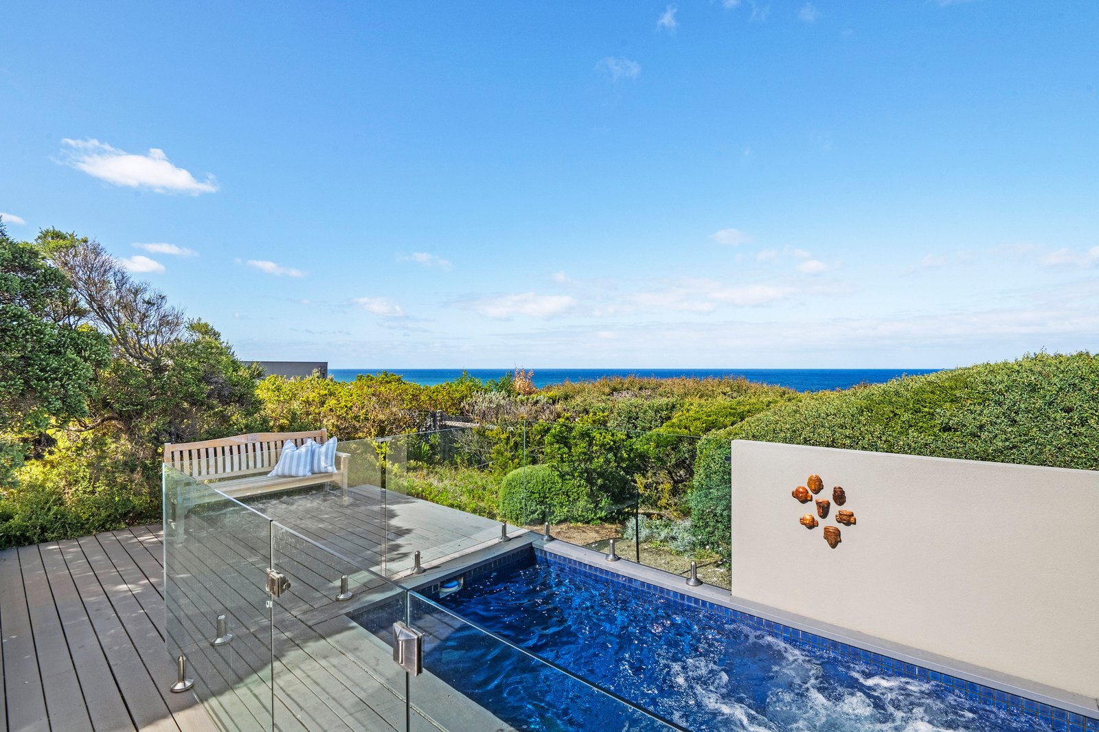 Set on just over one acre (4,406 sqm approx) “Pezula” is privately concealed behind a natural screen of established native moonah trees lining its impressive driveway and entrance. The four/five-bedroom residence, complete with a separate studio, enjoys a truly rare 360-degree outlook across the Mornington Peninsula. Panoramic views extend from the blue waters of Bass Strait across the rolling dunes of the St Andrews Beach Golf Course, through to Cape Schanck, with Arthurs Seat rising on the horizon.