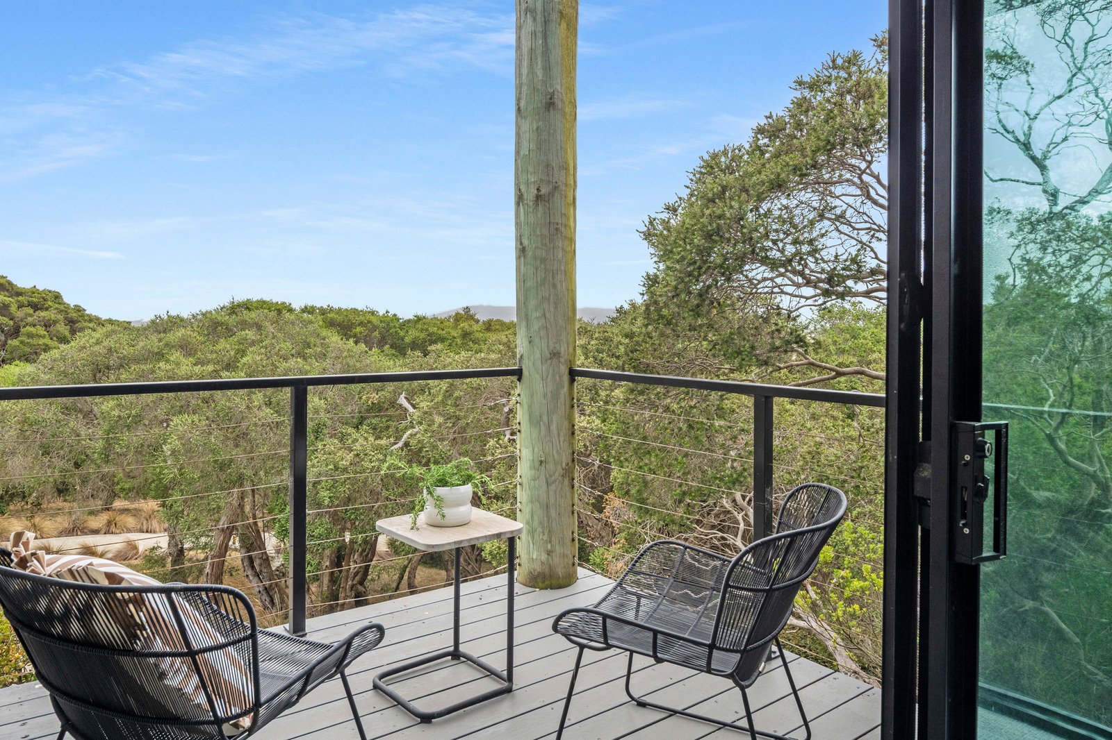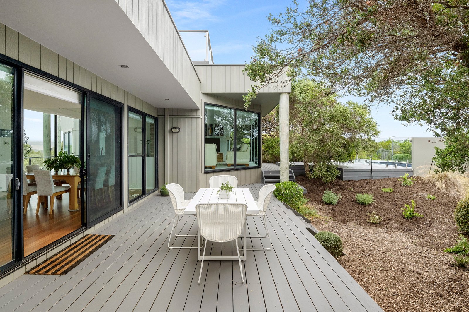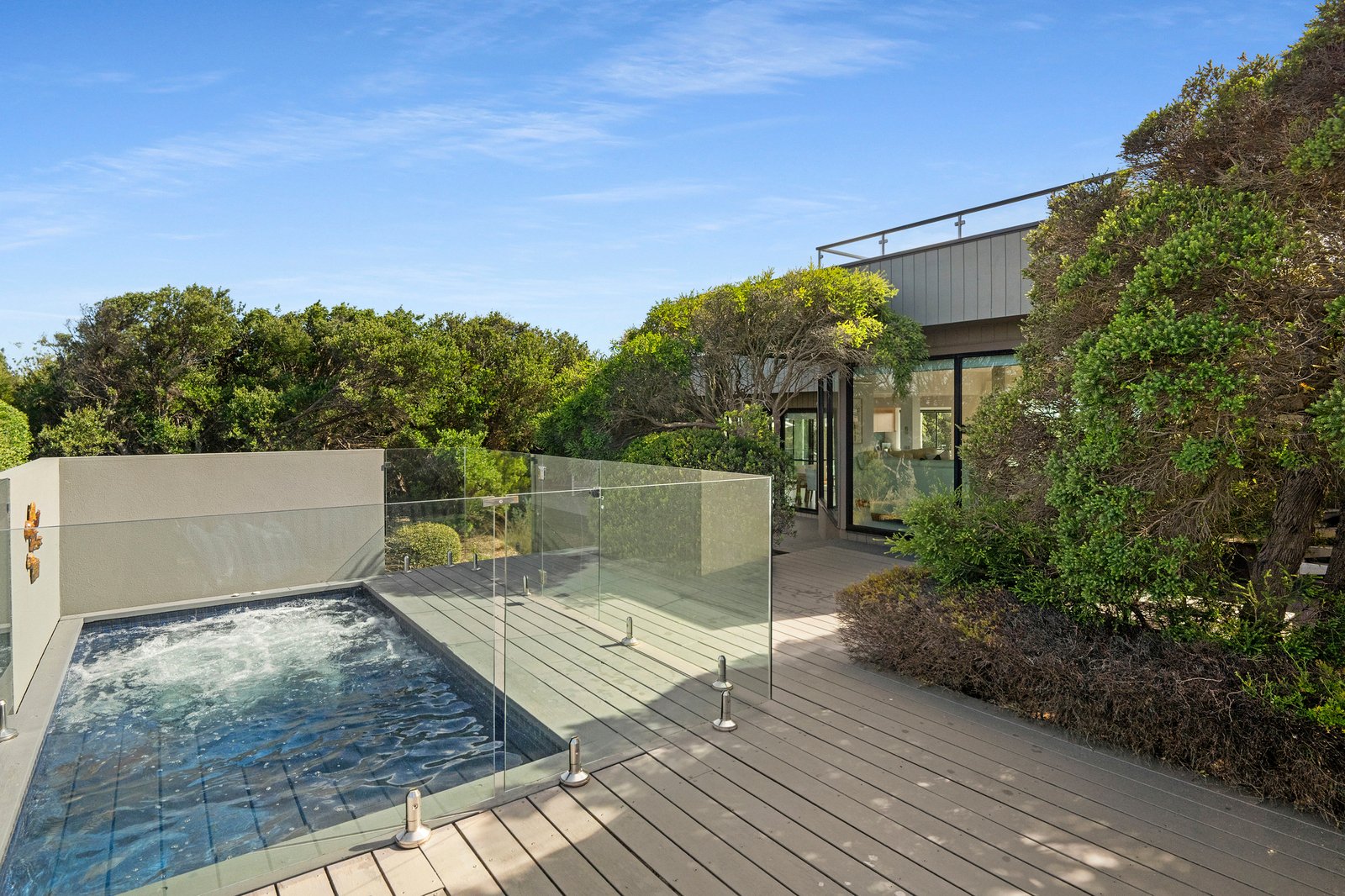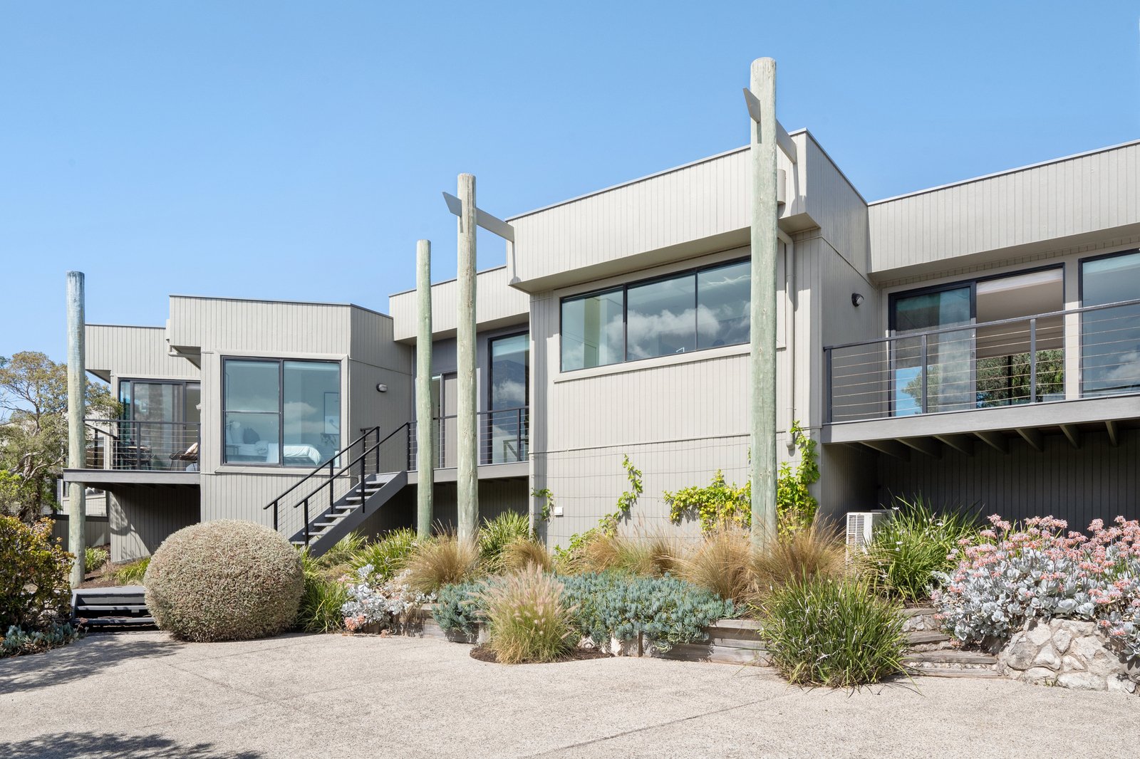Set on just over one acre (4,406 sqm approx) “Pezula” is privately concealed behind a natural screen of established native moonah trees lining its impressive driveway and entrance. The four/five-bedroom residence, complete with a separate studio, enjoys a truly rare 360-degree outlook across the Mornington Peninsula. Panoramic views extend from the blue waters of Bass Strait across the rolling dunes of the St Andrews Beach Golf Course, through to Cape Schanck, with Arthurs Seat rising on the horizon.