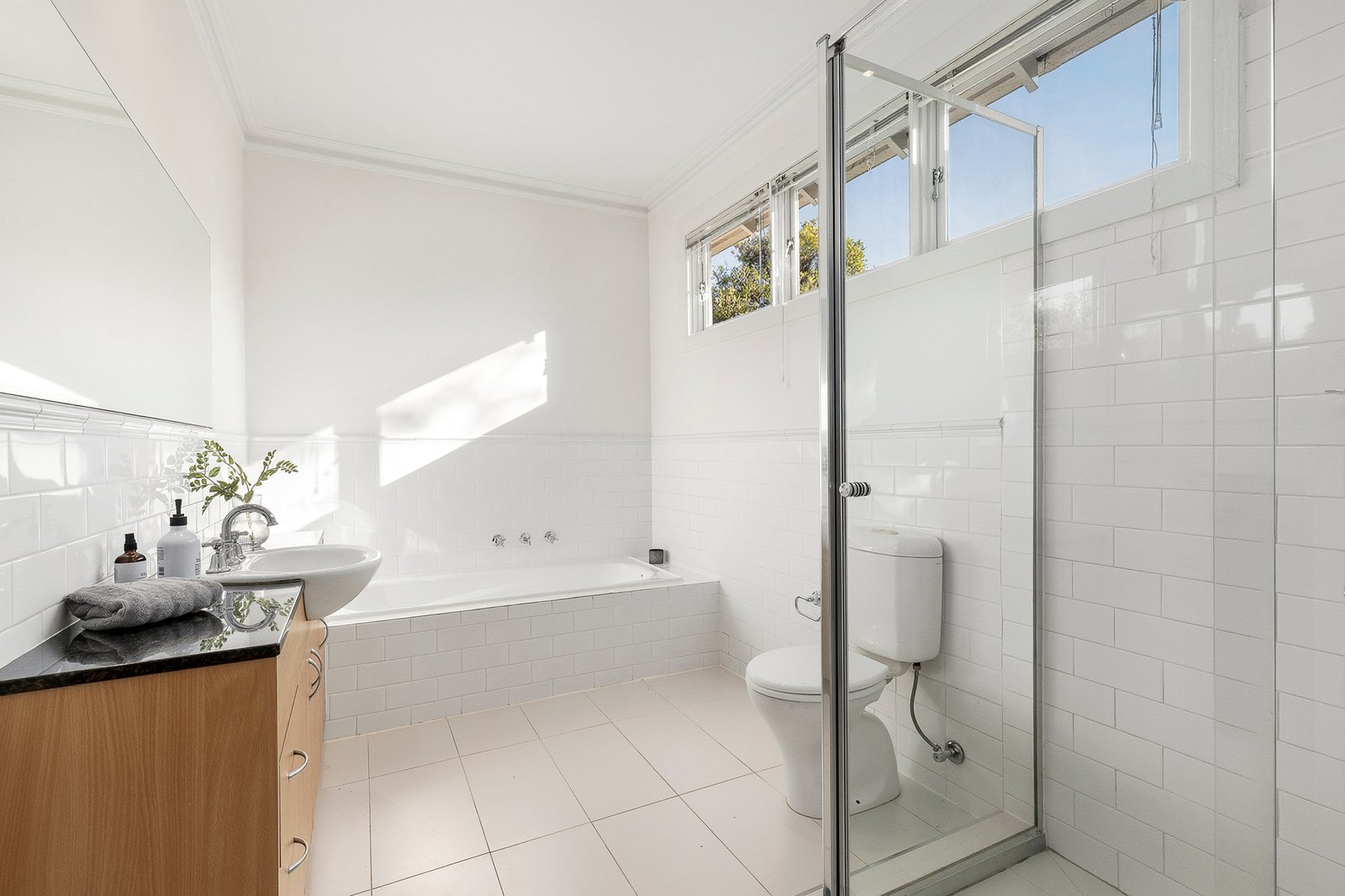 Upstairs, three light-filled bedrooms offer peace and privacy, each with split-system heating and cooling. The main bedroom features twin built-in robes and a granite-finished ensuite, while the family bathroom boasts a freestanding bathtub, ideal for young children.
