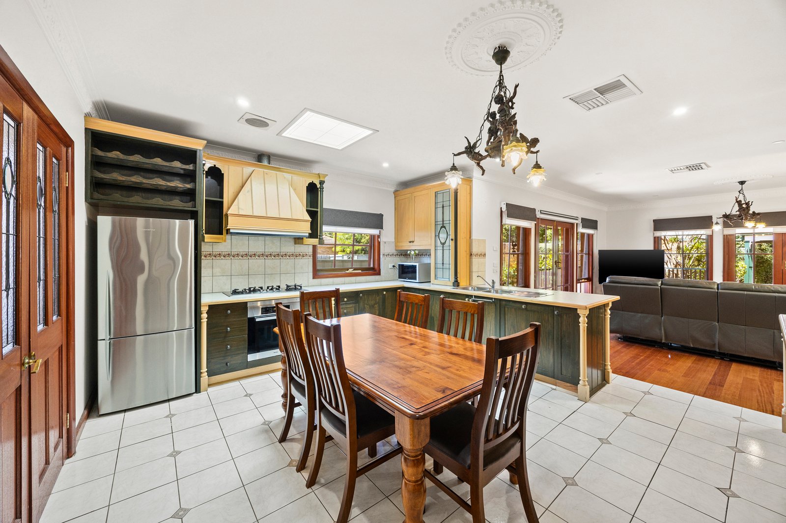 Classic L-shaped formal living & dining offers flexibility, complemented by a bespoke timber kitchen with a Miele...