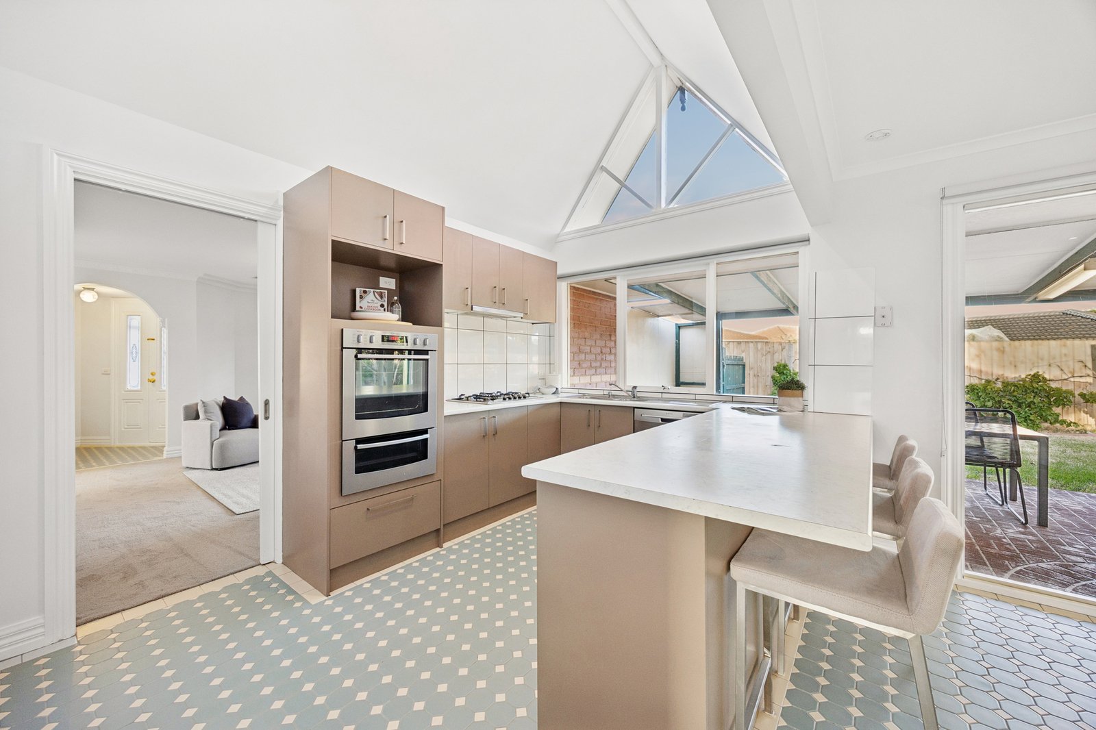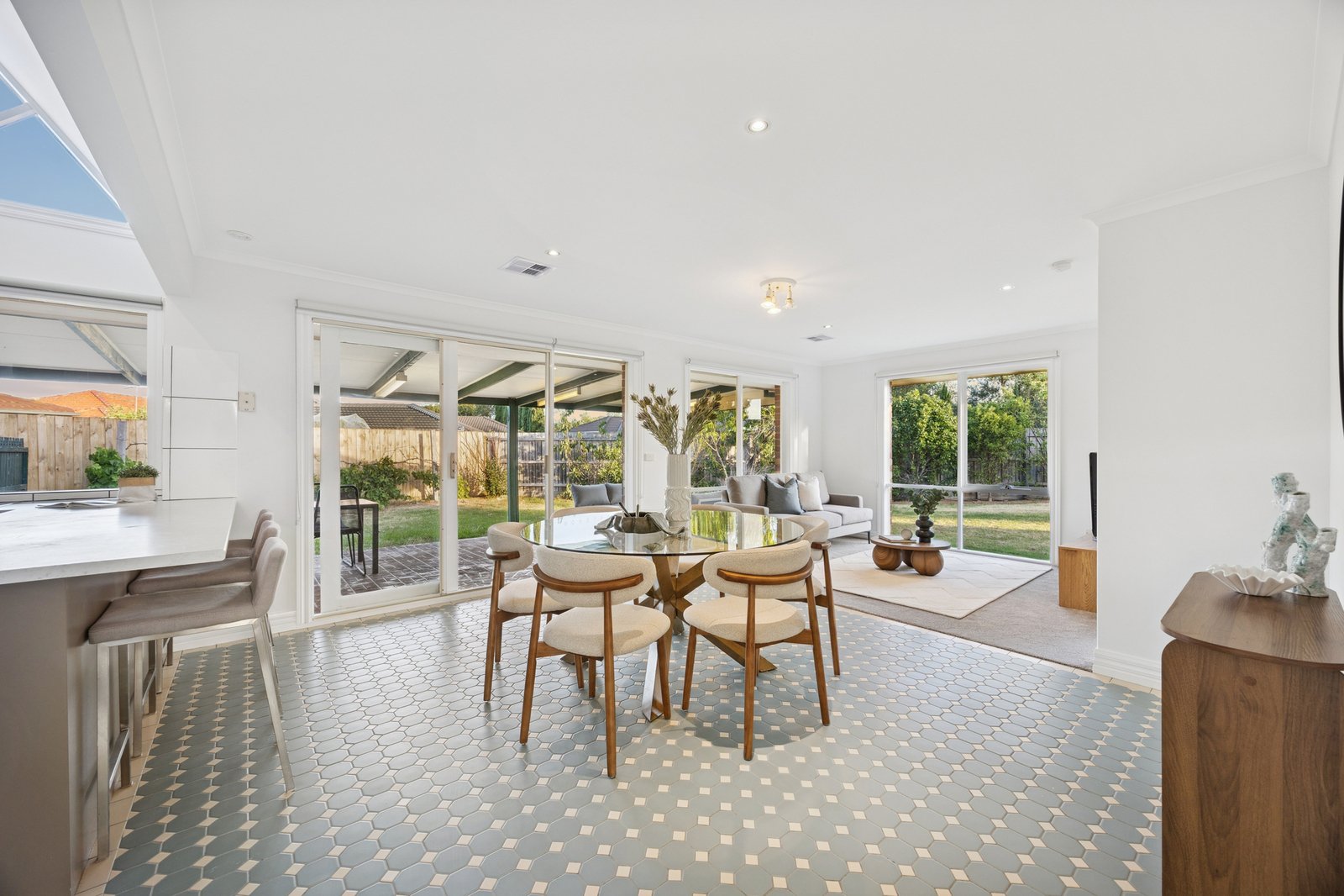 At the heart of the home is the modern, well-appointed kitchen, featuring stainless steel appliances and a dishwasher. Designed with both style and functionality in mind, the kitchen seamlessly opens to the meals area and a second living zone, making it ideal for families who love open-plan living. Large windows and sliding doors allow natural light to flood the space while providing uninterrupted views of the stunning outdoor entertaining area and the generous rear yard with cascading vines and beautifully manicured gardens – the perfect setting for summer barbecues, family gatherings or simply relaxing outdoors.