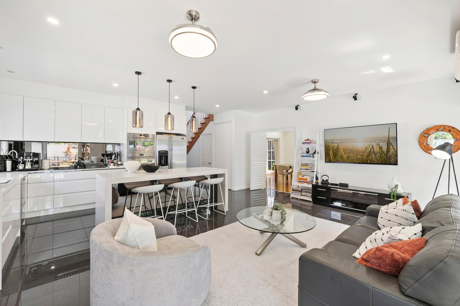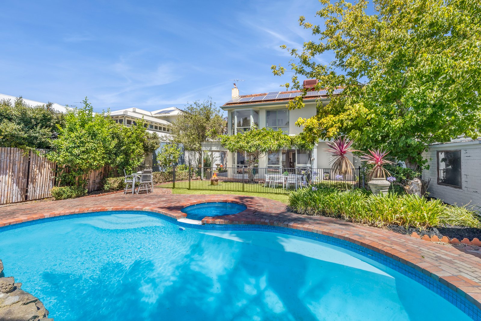 But it’s the great outdoors that sets this one apart. Set on generous 720sqm approx. grounds, there’s lawned, paved and decked al fresco areas to entertain, a salt-chlorinated pool and spa to enjoy and a beautiful resort style garden backdrop in the north-facing backyard.