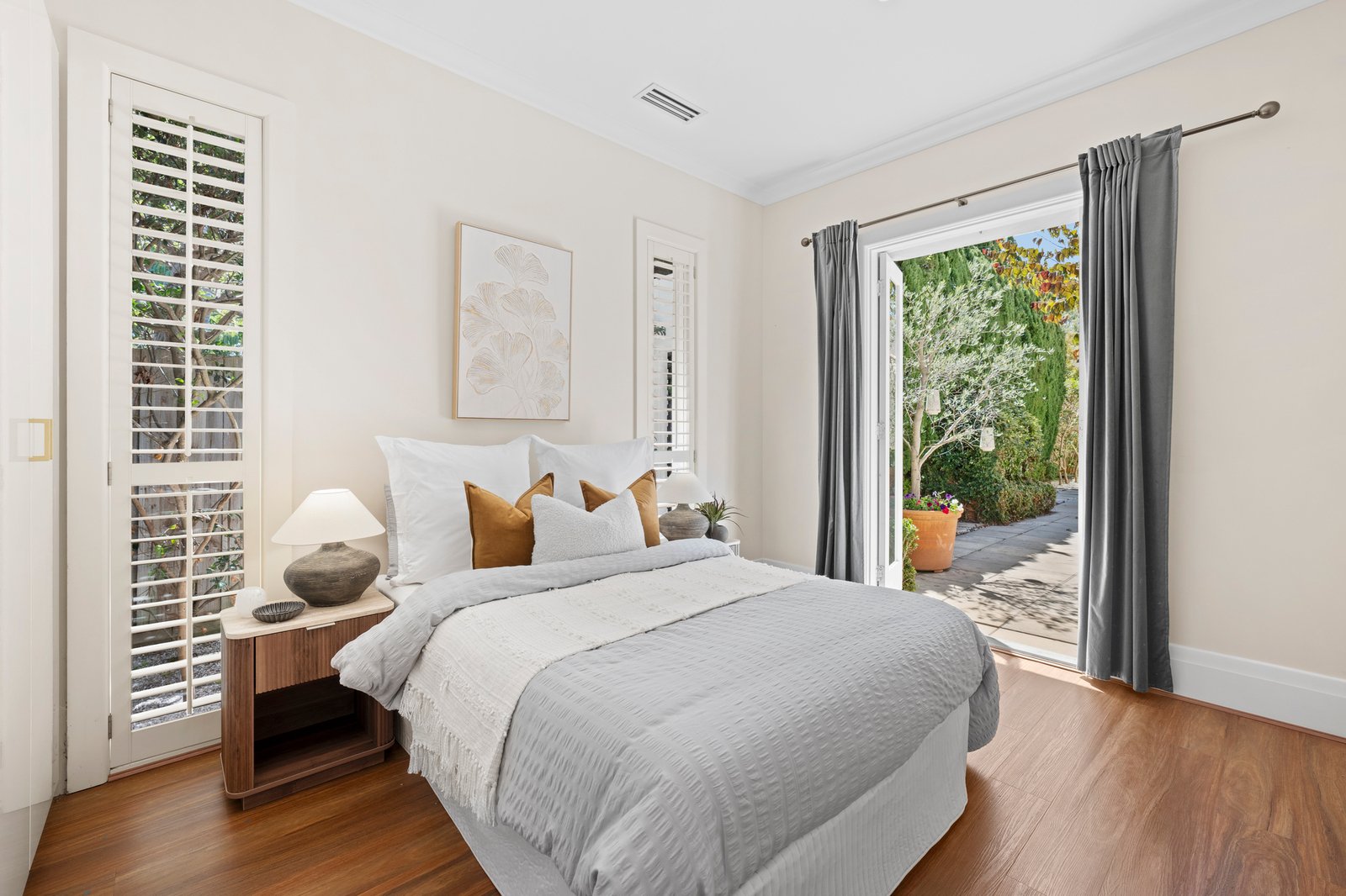 French doors positioned throughout the home invite light, greenery and fresh air to drift in from the central courtyard, establishing a wonderful sense of calm and seclusion.