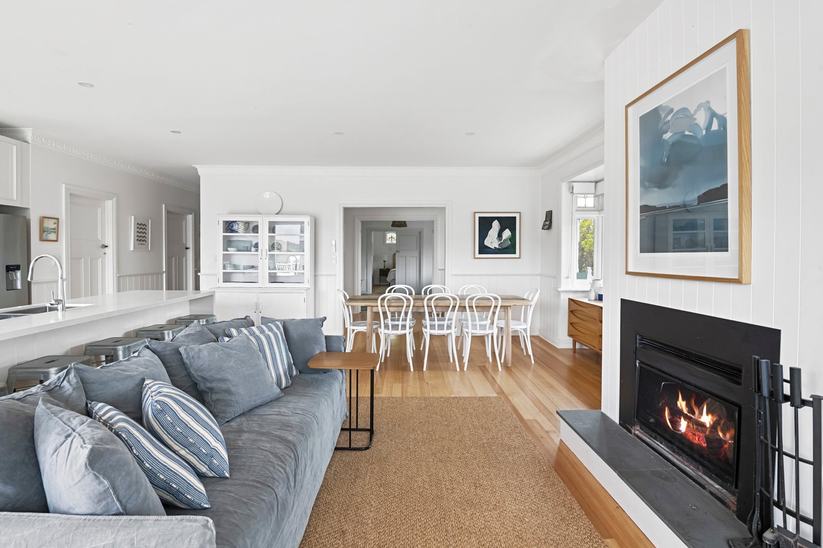 Masterfully combining the warmth of nostalgia with the sophistication of coastal design, the multi-level layout showcases modern finishes that celebrate the home’s distinctive Cape Cod character. With stunning leadlighting, intricate cornices, double-hung windows, French doors, and an open fireplace, the layout welcomes a two-bedroom accommodation wing, with an intimate lounge and bathroom, alongside vast entertaining proportions that take centre stage.