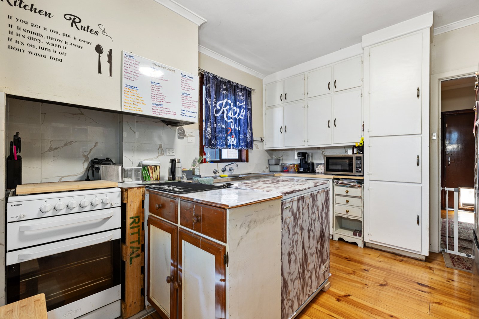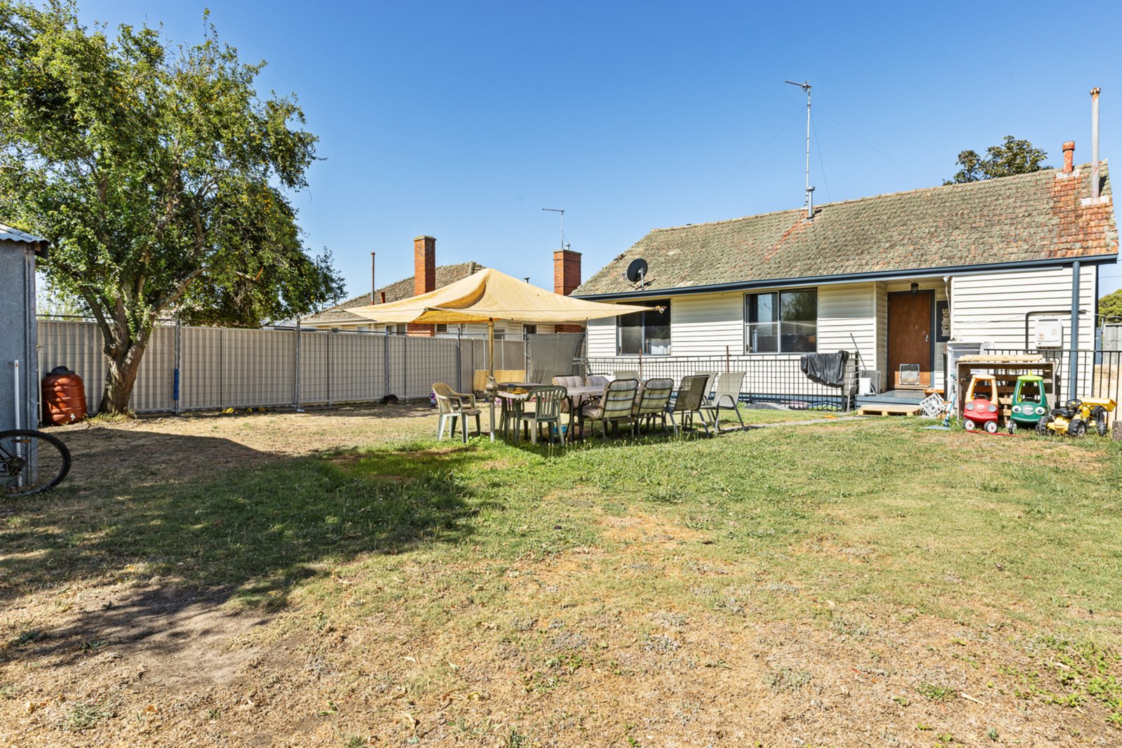 Inside, the home is rich in charm and comfort, featuring a spacious master bedroom filled with natural light, along with two additional well-sized bedrooms. The front living room is generous in size and showcases an inviting open fireplace, creating a cosy space to relax. Flowing through to the open-plan kitchen and meals area, timber floorboards add warmth while the kitchen impresses with a large bench, double sink, pantry and ample storage. A centrally located, renovated bathroom includes a large shower, vanity and toilet, while a separate laundry with sink adds everyday practicality. Central heating throughout the home ensures comfort across all seasons. Outdoors, the expansive yet low-maintenance backyard offers plenty of space to enjoy, complete with excellent privacy and a large double lock-up garage.