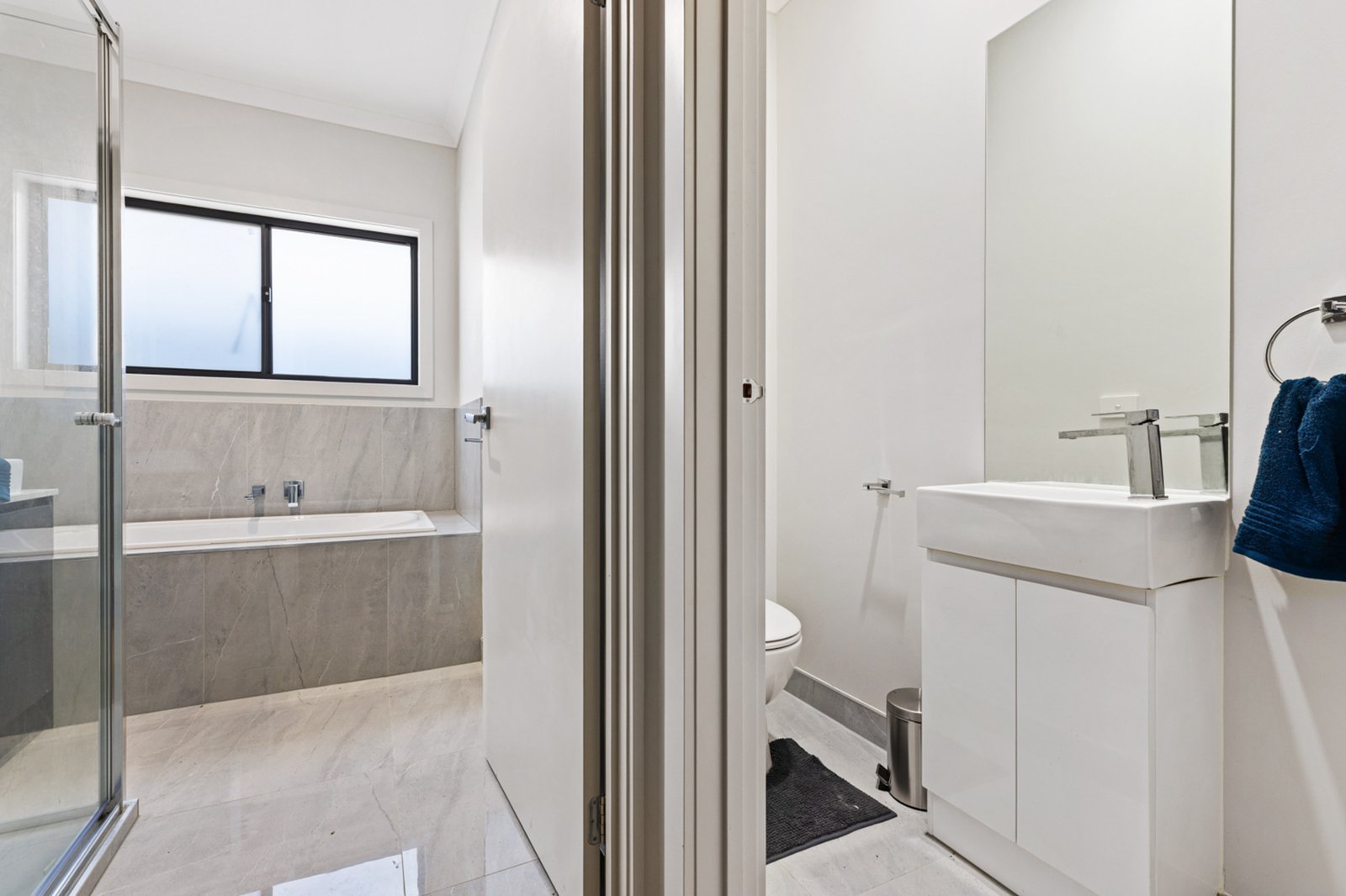 Accommodation comprises three well-proportioned bedrooms, with the master bedroom featuring a walk-in robe and private ensuite complete with single vanity, shower and toilet. The remaining two bedrooms are fitted with built-in robes and are serviced by the central bathroom, which includes a shower, bathtub, vanity and a separate toilet/powder room for added convenience.
