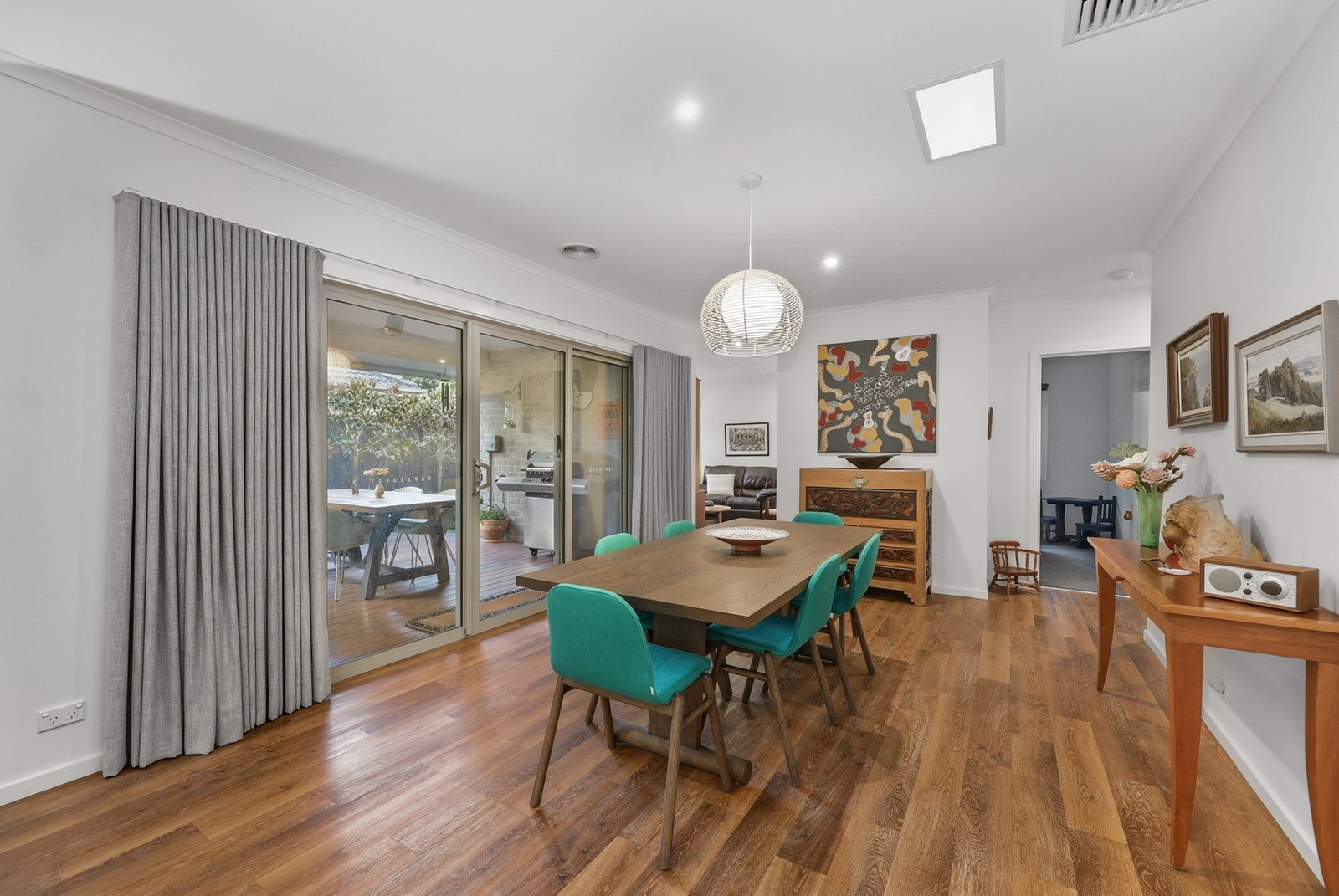 Step inside to discover a thoughtfully designed layout with multiple living zones to suit families of all stages. The heart of the home is the open-plan kitchen, meals and living area, which seamlessly flows through to a covered, decked alfresco – ideal for entertaining year-round. The kitchen is beautifully appointed with a gas cooktop, Asko oven and dishwasher, along with a butler’s pantry (with refrigerator included in sale) that provides excellent storage and functionality. A second living area at the rear of the home offers a peaceful sitting room or lounge, with large windows overlooking the landscaped gardens.
