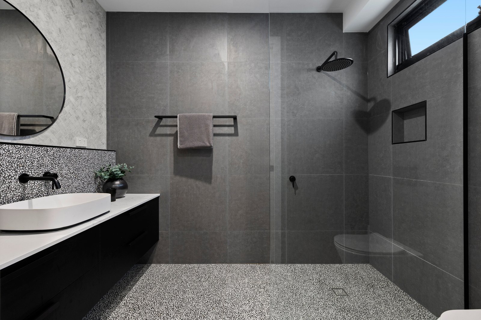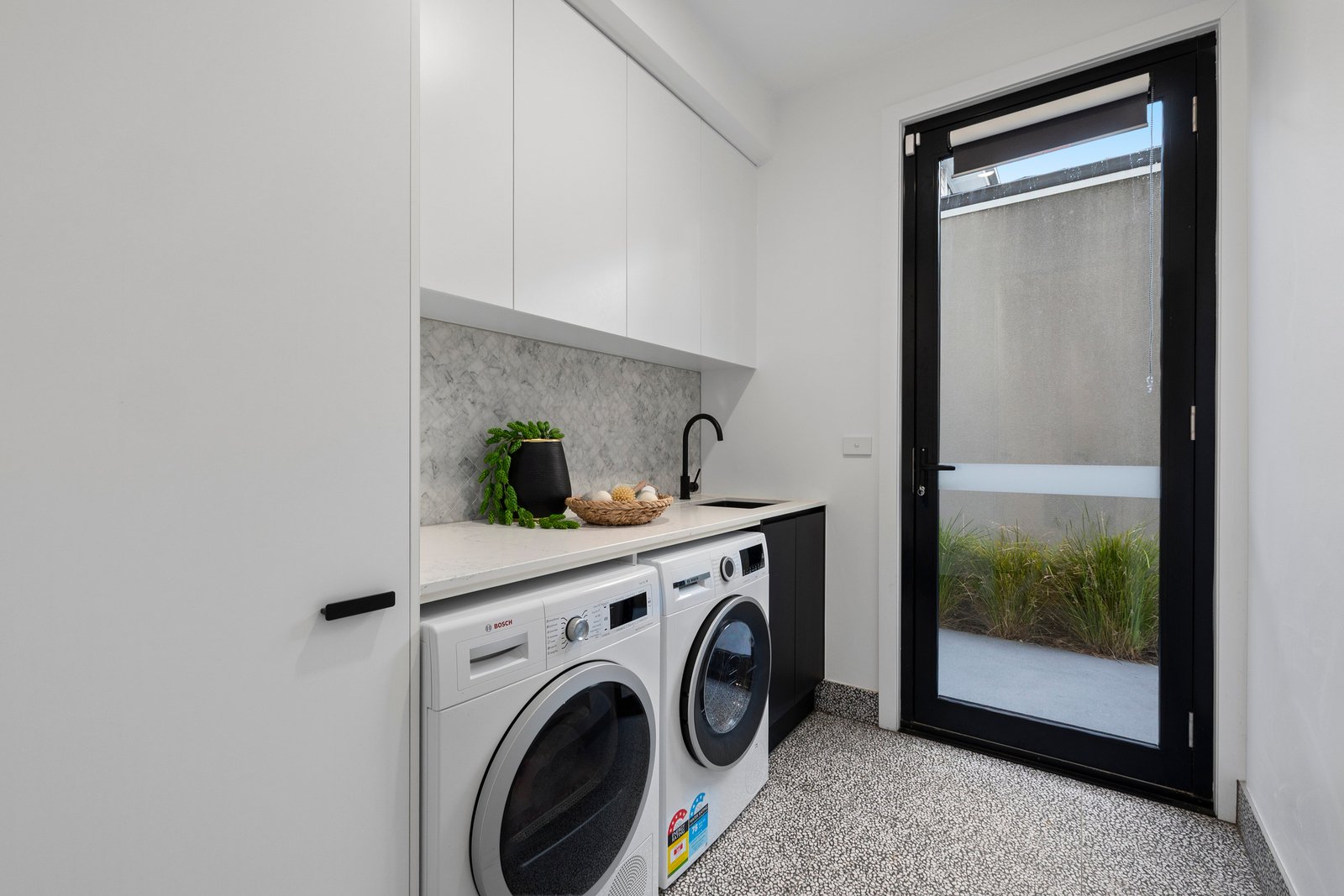 A full laundry and stylish powder room are further nods to the liveability, while ducted heating/cooling, plenty of storage and a water tank, plus an alarm and well-sized auto garage round off the package.