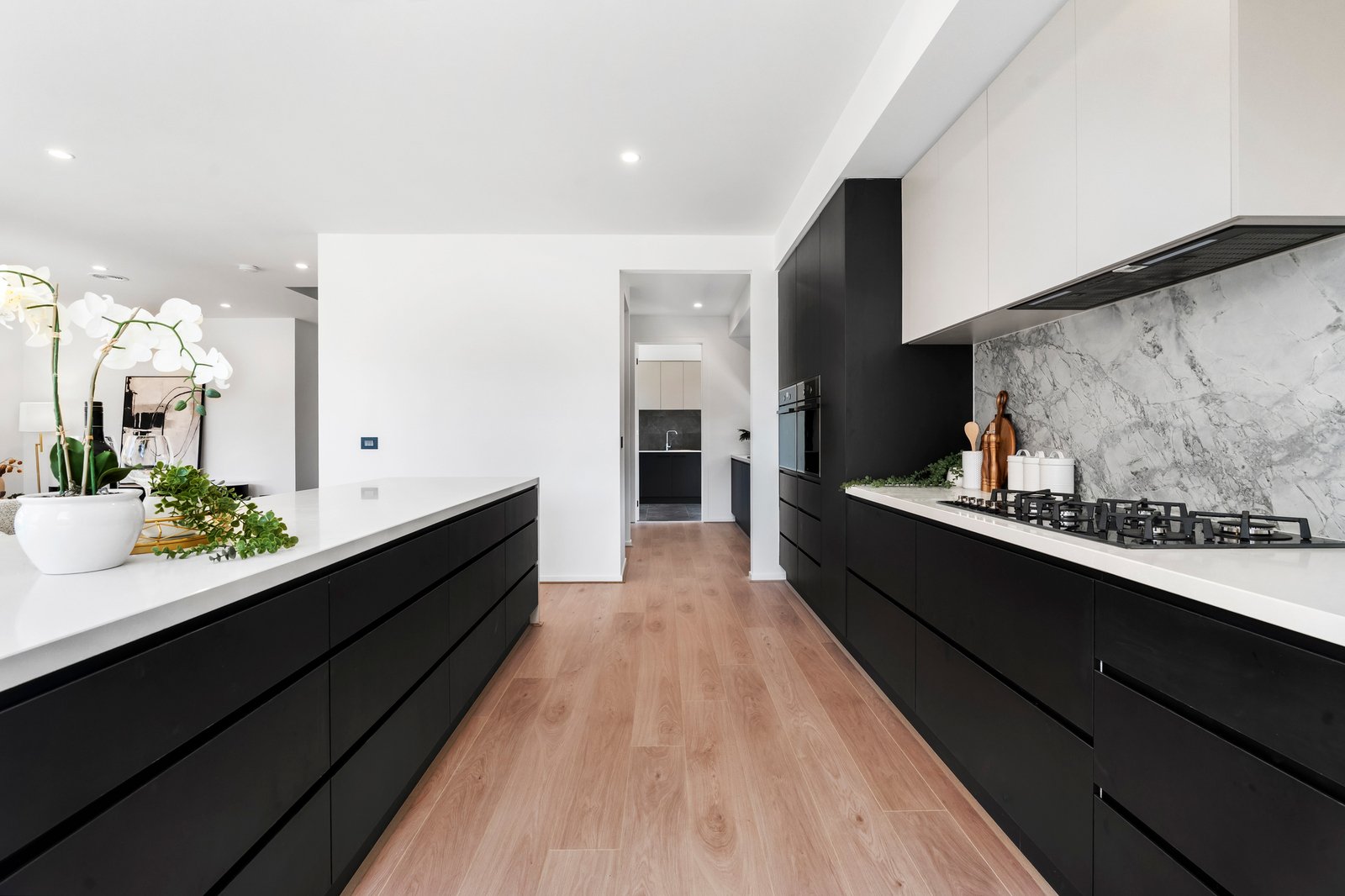 A butler’s pantry and large laundry add to the practical advantage of the cooking and utility section of the home.