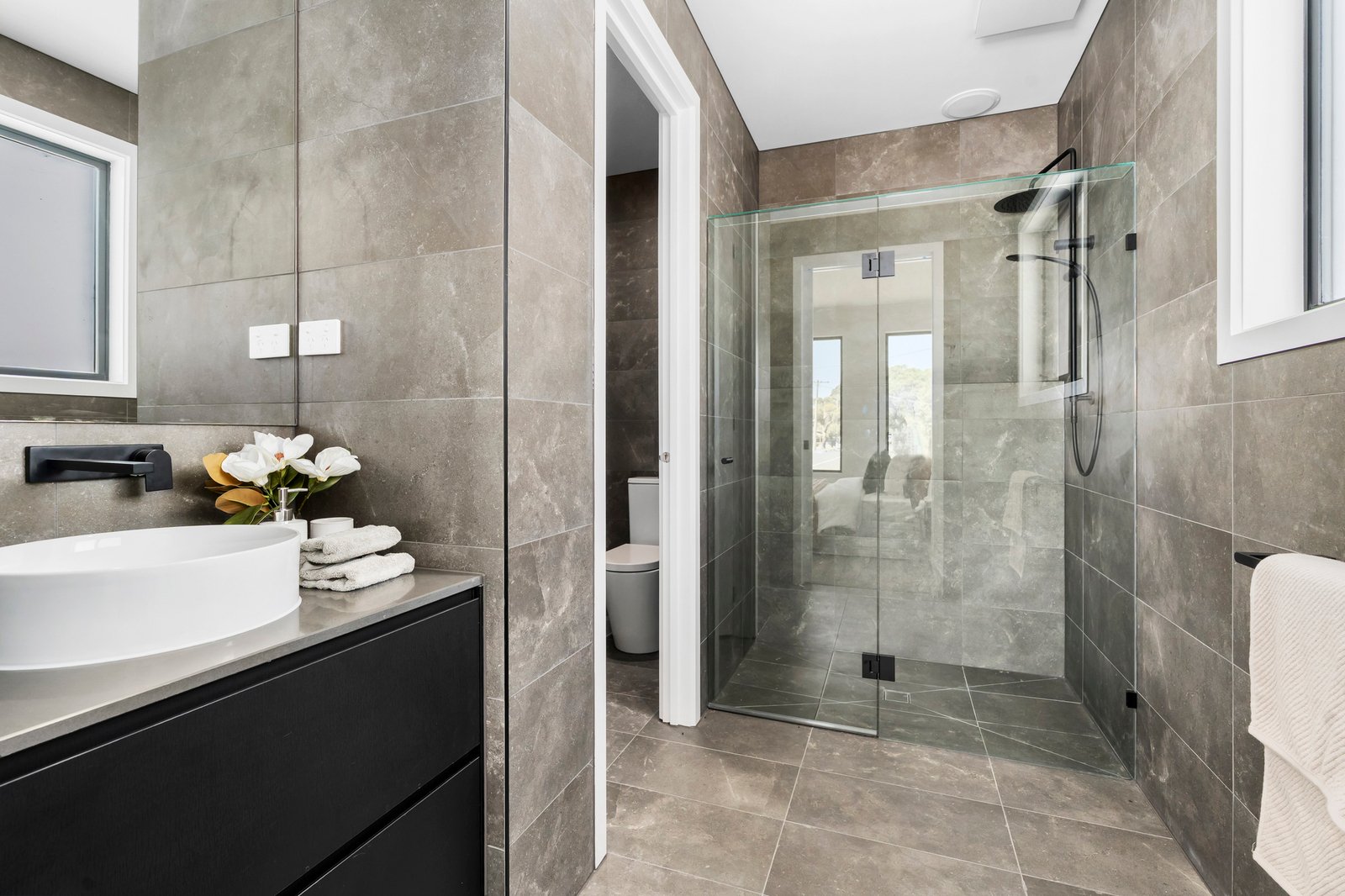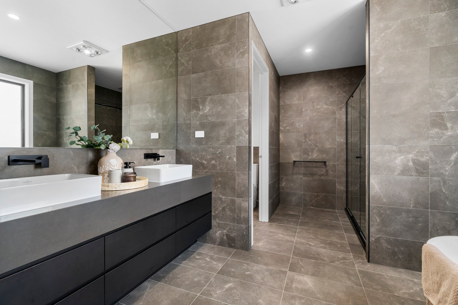The smart design sets up the master suite on the ground floor with lovely street frontage, and a lavish sized ensuite bathroom with on trend wall-to-wall alcove in the shower for all your beauty supplies.