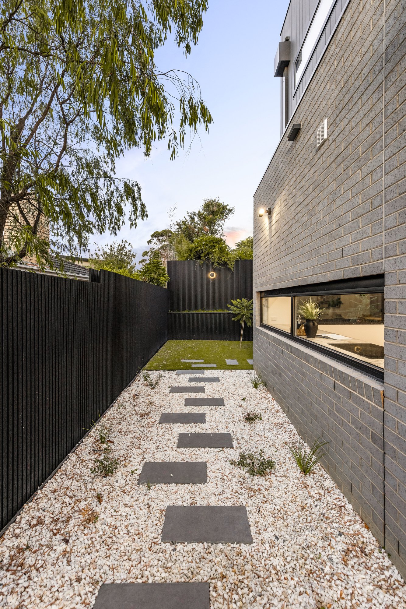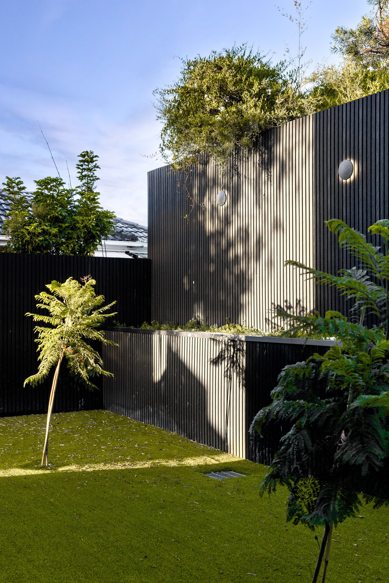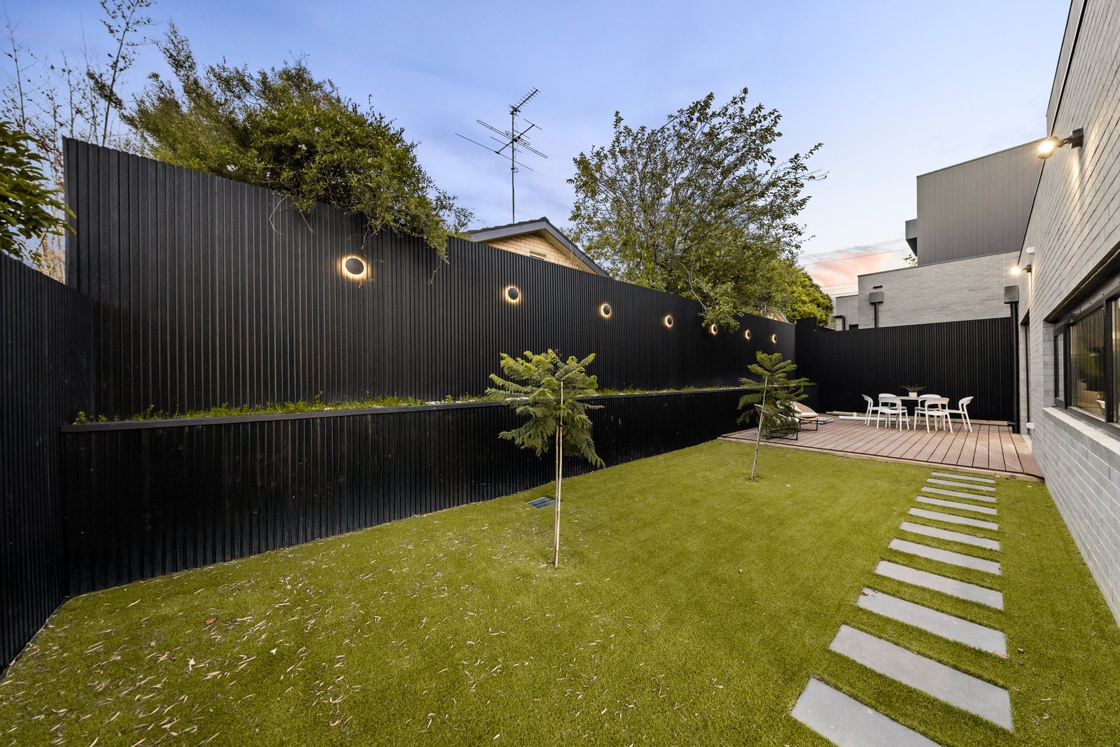 Ensuring every element has been carefully considered, the open plan domain spans out through stacker sliding doors onto a large mod-wood entertainer’s deck that sits beside a synthetic turf yard and beautiful timber panelling.