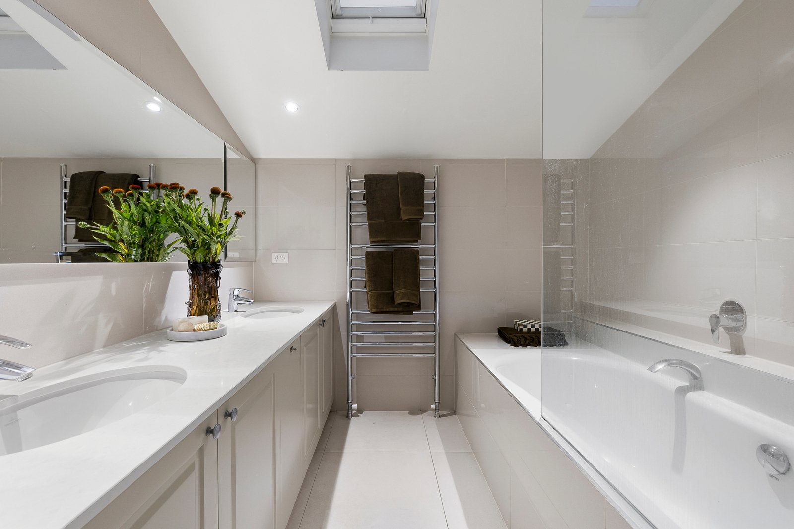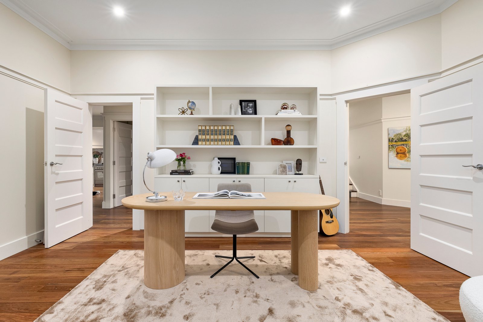 Five bedrooms plus an executive home office and 3.5 bathrooms include a luxurious parents’ suite, complete with private terrace, dual walk-in robes and a hotel-style ensuite with bath and twin vanity. Upstairs, three further bedrooms share a skylit family bathroom, while children or guests enjoy a dedicated rumpus and adults retreat to a beautiful formal lounge. A separately zoned wing with bedroom, study and spa bathroom offers outstanding flexibility for guests, teens or au pair accommodation.