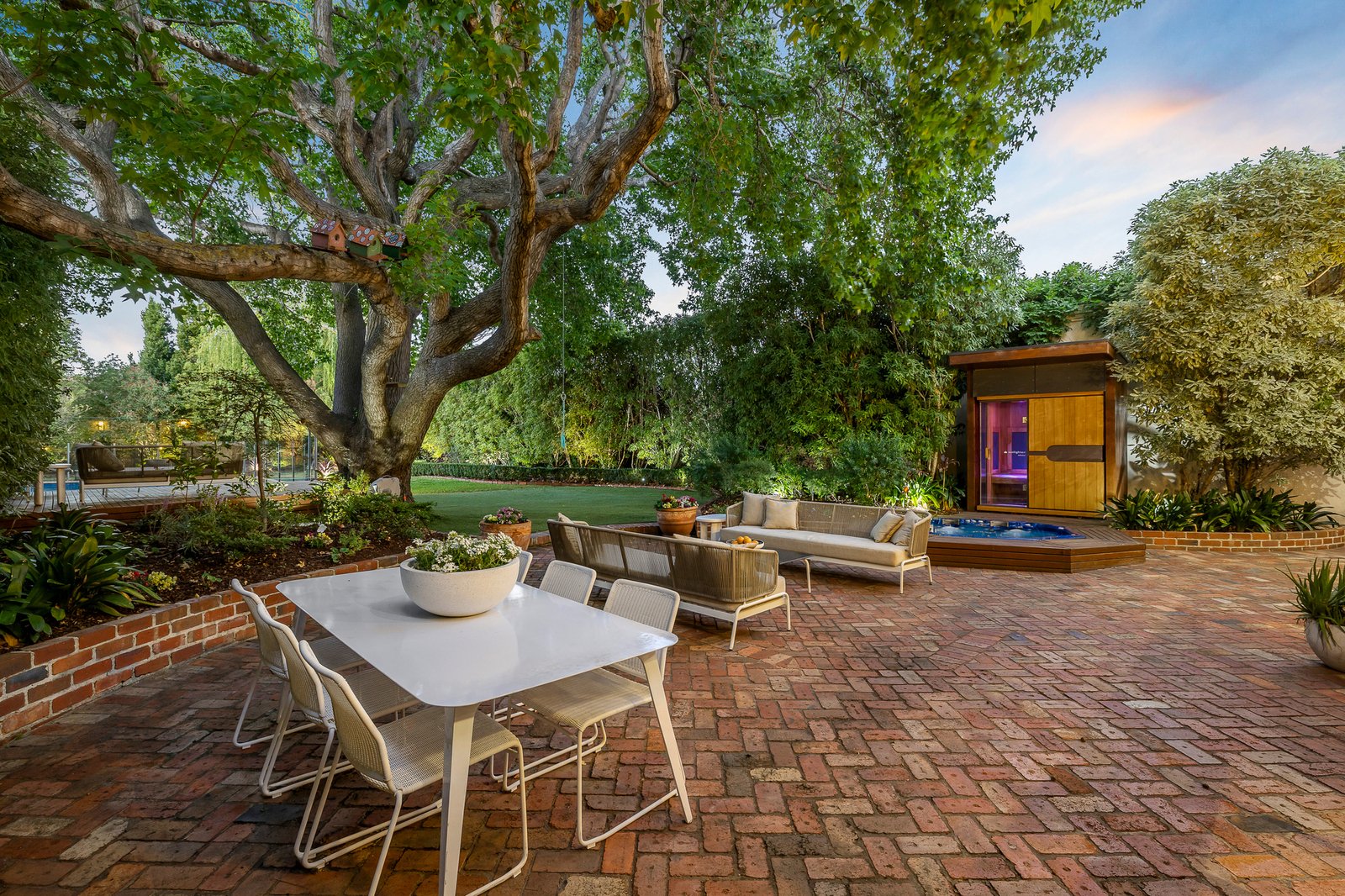 Multiple living zones unfold across two generous levels, thoughtfully designed to accommodate every stage of family life. A substantial open-plan family domain with fireplace opens to a north-facing al fresco deck, gas-heated pool, spa, infrared sauna, rolling lawns and in-ground trampoline, shaded by a majestic Liquid Amber to create a wellness-inspired, resort-style setting.