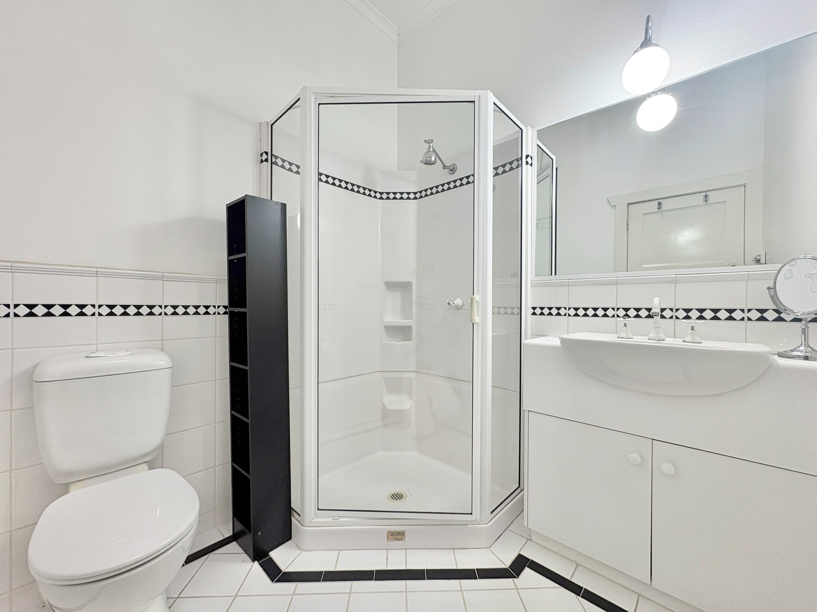 - Master bedroom featuring built-in robes, ceiling fan and ensuite with shower, toilet and vanity