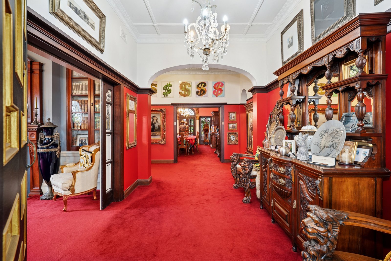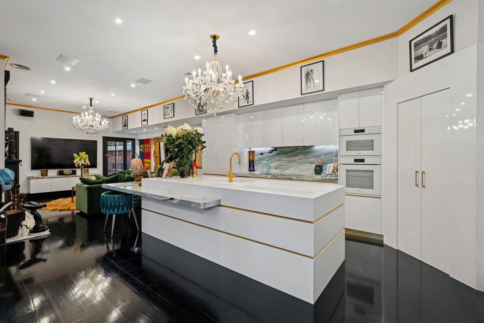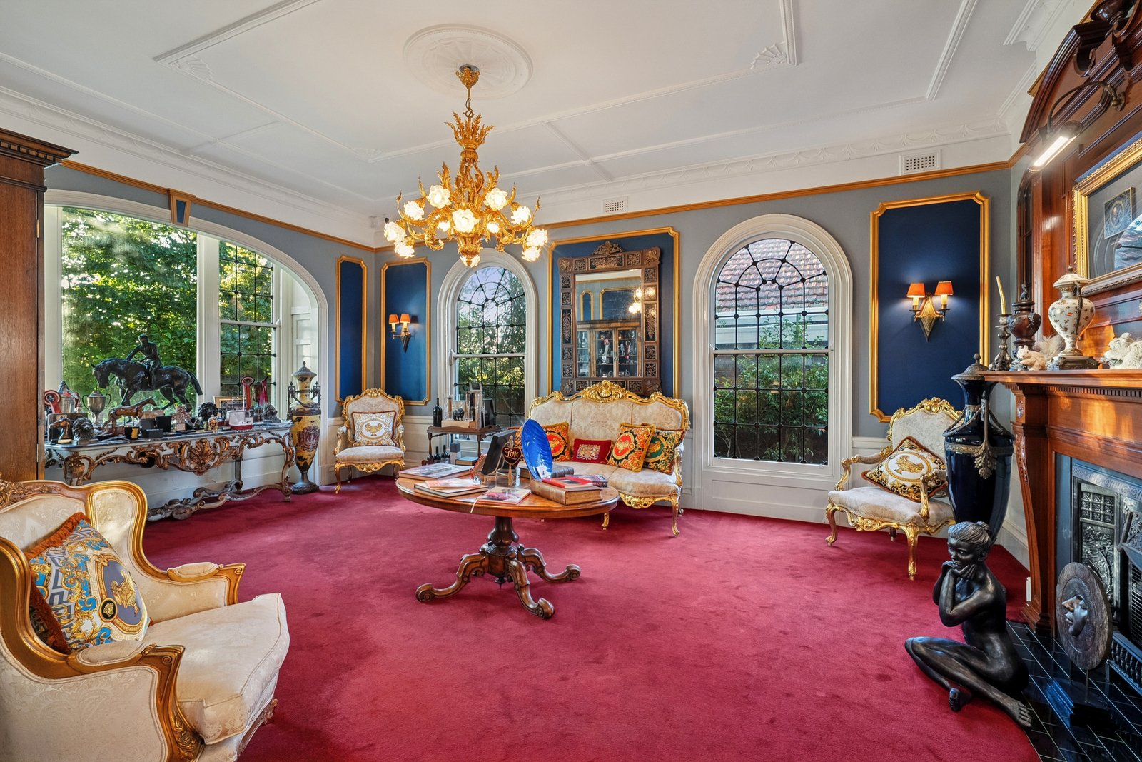 Rich in history, grand in stature and opulent in style, this incredible waterfront residence stands as a landmark home of prestige. Originally built in 1930, the home retains it stately period character, while incorporating contemporary luxury for the modern lifestyle. Showcasing grand proportions, spectacular bay views, multiple living and entertaining zones, and eye-catching features at every turn, this remarkable property offers an unparalleled living experience befitting its iconic waterfront position. Lush manicured gardens, towering mature trees and a regal pair of lion statues greet you on arrival. The red brick and rendered façade is complemented by gold columns and a portico entry with a magnificent chandelier, establishing the home’s bold and luxurious style. Inside, the breathtaking entry features soaring high ceilings, ornate character detail, original timber plate rails and a rich, inviting colour palette, introducing the grandeur within. The exquisite formal lounge showcases a beautiful bay window capturing water views, stunning arched windows, antique brass lighting, an original timber mantel and fireplace, and elegant glass-encased bookshelves, providing an impressive setting to host gatherings or simply retreat and enjoy the vista. Further on, a grand formal dining room exudes ambience and sophistication, perfect for hosting dinner parties in high-end style. An open plan kitchen and living area transitions to contemporary finishes, while retaining traditional features with a fireplace and chandelier lighting. The high-end kitchen features a large island with stone benchtops, inset sink, brass tapware, and integrated drinks cooler with drainage, perfect for gathering around with family and friends. Premium Miele appliances include dual 600mm ovens, induction cooktop, fully integrated dishwasher, and integrated fridge/freezer. For further entertaining space, head upstairs to the lavish billiard room with a graceful arched glass doorway leading out to a terrace balcony, the ideal place to enjoy the ever-changing vistas and vibrant activities of the bay. The ground floor main bedroom continues the sense of luxury, impressive in scale with walk-in robes and a striking glass-walled ensuite featuring a statement glass bath, open shower, floating glass vanity and ambient lighting. A connecting dressing room is fully fitted with storage provisions for the avid fashionista, along with a secure storeroom for your valuables. A spacious second bedroom on the ground floor enjoys a poolside view, along with three further bedrooms upstairs, serviced by a contemporary bathroom with skylight, stone-topped dual vanity, and claw foot bath. The rear of the home offers a self-contained retreat with sauna, skylights and an indoor garden, along with a kitchenette, bathroom, laundry, studio space and bedroom - a versatile zone ideal for guest accommodation, a home office or gymnasium, with direct access to the pool. Additional features within the home include a sound system, security system, ducted heating and cooling. Outside, the undercover alfresco features overhead heating and a louvre roof allowing for year-round use, overlooking the grotto-style pool and spa that adds a touch of Hollywood glamour to the residence. The double remote garage includes an attic loft for storage, and a staircase to the underground cellar, keeping your wine collection at optimum temperature, with a portal window offering an underwater view of the pool. A residence of rare distinction, this iconic waterfront estate delivers an extraordinary lifestyle defined by luxury, history and connection to our beautiful bay. A once-in-a-generation opportunity to secure one of the region’s most prestigious homes, this is a property that will continue to inspire and impress for years to come.