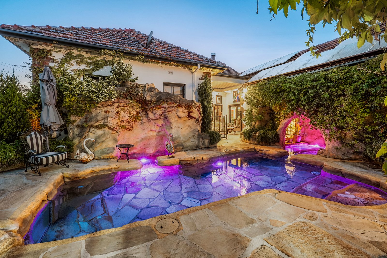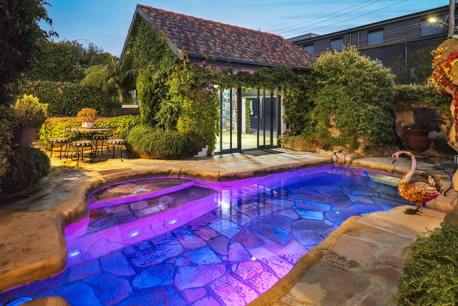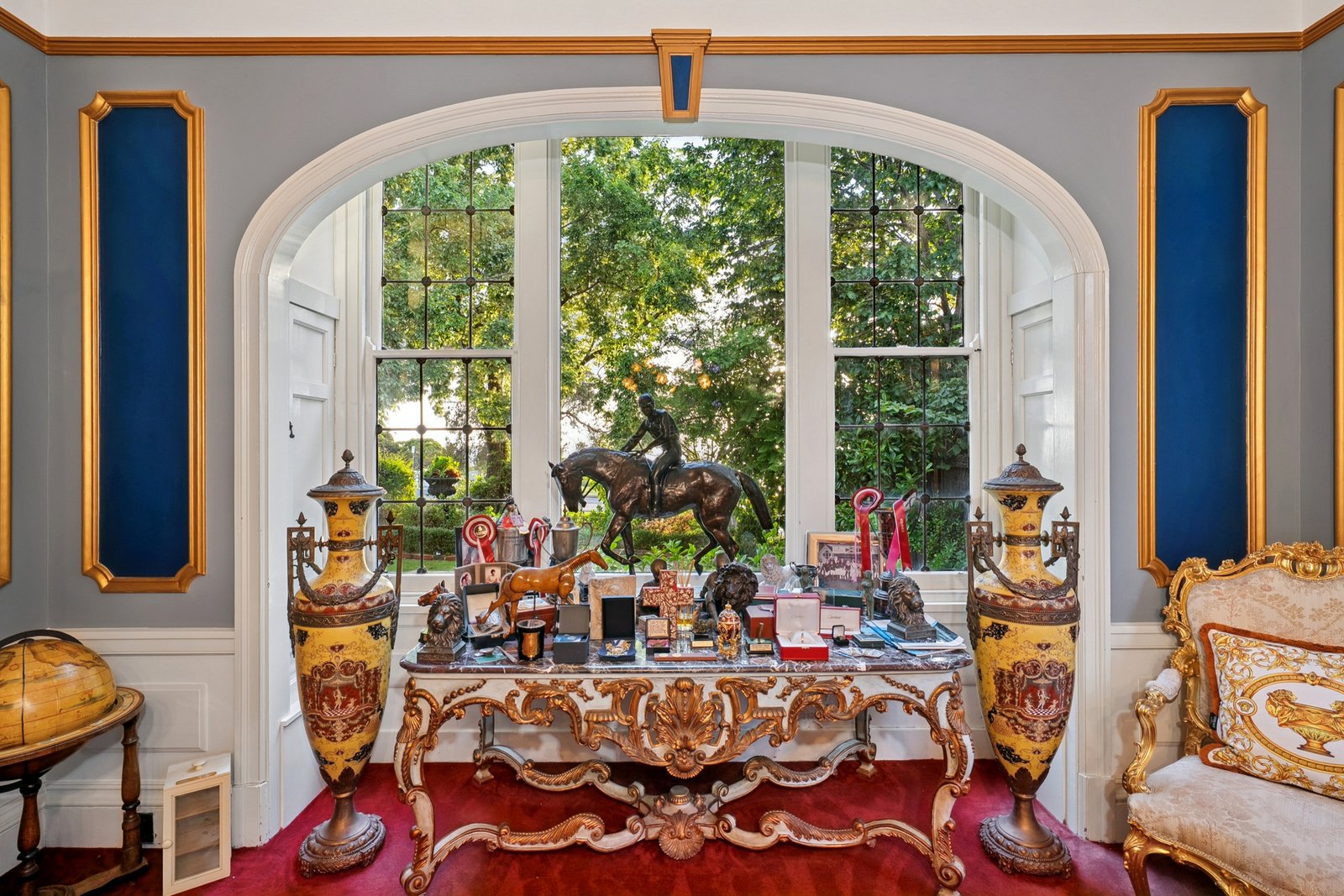 Rich in history, grand in stature and opulent in style, this incredible waterfront residence stands as a landmark home of prestige. Originally built in 1930, the home retains it stately period character, while incorporating contemporary luxury for the modern lifestyle. Showcasing grand proportions, spectacular bay views, multiple living and entertaining zones, and eye-catching features at every turn, this remarkable property offers an unparalleled living experience befitting its iconic waterfront position. Lush manicured gardens, towering mature trees and a regal pair of lion statues greet you on arrival. The red brick and rendered façade is complemented by gold columns and a portico entry with a magnificent chandelier, establishing the home’s bold and luxurious style. Inside, the breathtaking entry features soaring high ceilings, ornate character detail, original timber plate rails and a rich, inviting colour palette, introducing the grandeur within. The exquisite formal lounge showcases a beautiful bay window capturing water views, stunning arched windows, antique brass lighting, an original timber mantel and fireplace, and elegant glass-encased bookshelves, providing an impressive setting to host gatherings or simply retreat and enjoy the vista. Further on, a grand formal dining room exudes ambience and sophistication, perfect for hosting dinner parties in high-end style. An open plan kitchen and living area transitions to contemporary finishes, while retaining traditional features with a fireplace and chandelier lighting. The high-end kitchen features a large island with stone benchtops, inset sink, brass tapware, and integrated drinks cooler with drainage, perfect for gathering around with family and friends. Premium Miele appliances include dual 600mm ovens, induction cooktop, fully integrated dishwasher, and integrated fridge/freezer. For further entertaining space, head upstairs to the lavish billiard room with a graceful arched glass doorway leading out to a terrace balcony, the ideal place to enjoy the ever-changing vistas and vibrant activities of the bay. The ground floor main bedroom continues the sense of luxury, impressive in scale with walk-in robes and a striking glass-walled ensuite featuring a statement glass bath, open shower, floating glass vanity and ambient lighting. A connecting dressing room is fully fitted with storage provisions for the avid fashionista, along with a secure storeroom for your valuables. A spacious second bedroom on the ground floor enjoys a poolside view, along with three further bedrooms upstairs, serviced by a contemporary bathroom with skylight, stone-topped dual vanity, and claw foot bath. The rear of the home offers a self-contained retreat with sauna, skylights and an indoor garden, along with a kitchenette, bathroom, laundry, studio space and bedroom - a versatile zone ideal for guest accommodation, a home office or gymnasium, with direct access to the pool. Additional features within the home include a sound system, security system, ducted heating and cooling. Outside, the undercover alfresco features overhead heating and a louvre roof allowing for year-round use, overlooking the grotto-style pool and spa that adds a touch of Hollywood glamour to the residence. The double remote garage includes an attic loft for storage, and a staircase to the underground cellar, keeping your wine collection at optimum temperature, with a portal window offering an underwater view of the pool. A residence of rare distinction, this iconic waterfront estate delivers an extraordinary lifestyle defined by luxury, history and connection to our beautiful bay. A once-in-a-generation opportunity to secure one of the region’s most prestigious homes, this is a property that will continue to inspire and impress for years to come.