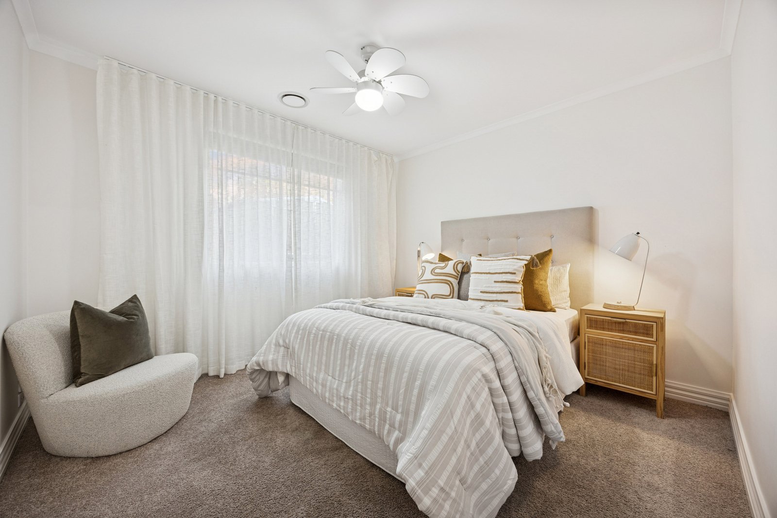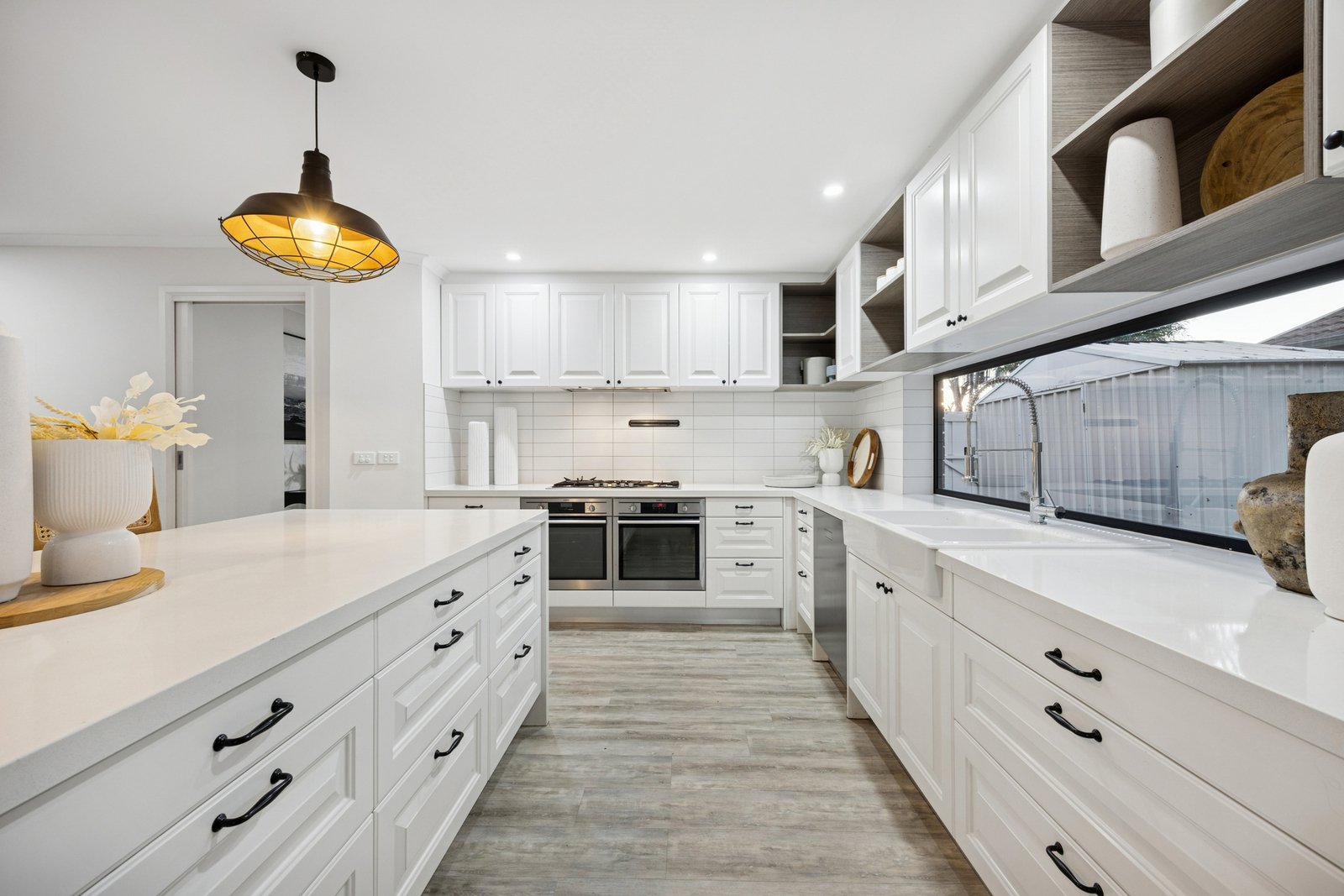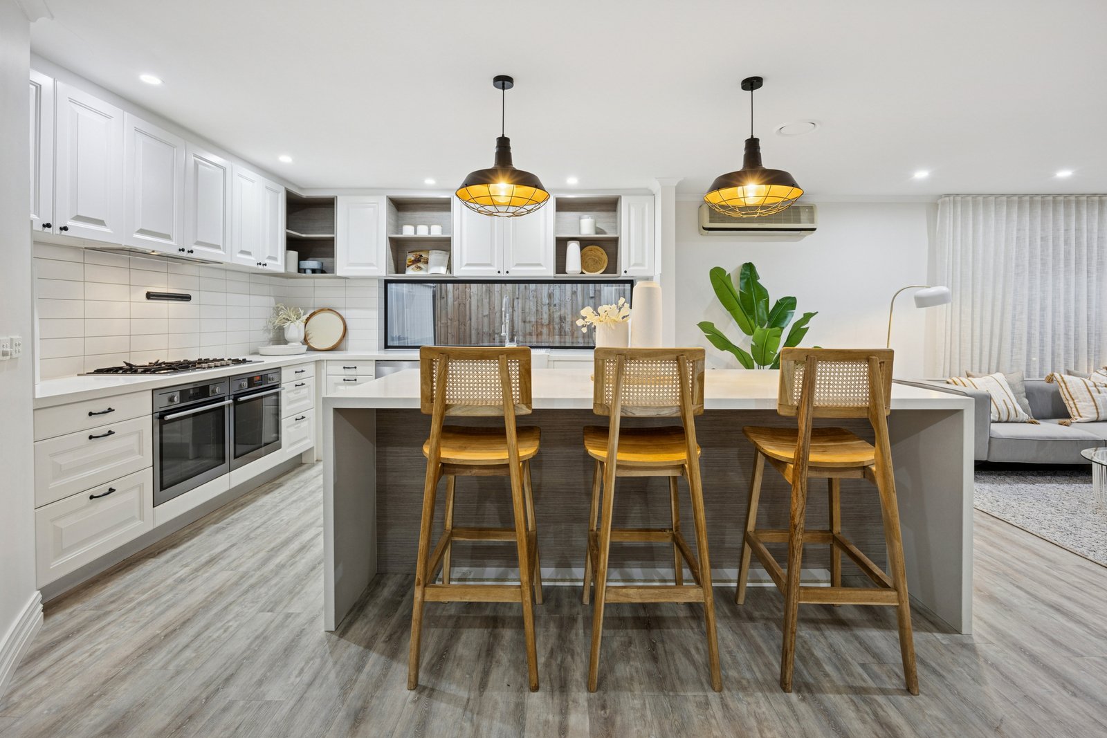 Super stylish with a state-of-the-art kitchen (starring prestige dual AEG ovens and Asko dishwasher), there are designer features including a stone-wrapped dining-bench and barn-door walk-in pantry, plus quality bathroom fittings (including a super-deep semi-freestanding bath). All the family functional extras are here too, including built-in robes for every bedroom, ceiling fans for most rooms, reverse-cycle air-conditioning upstairs and down, ducted heating throughout and a double garage out front!