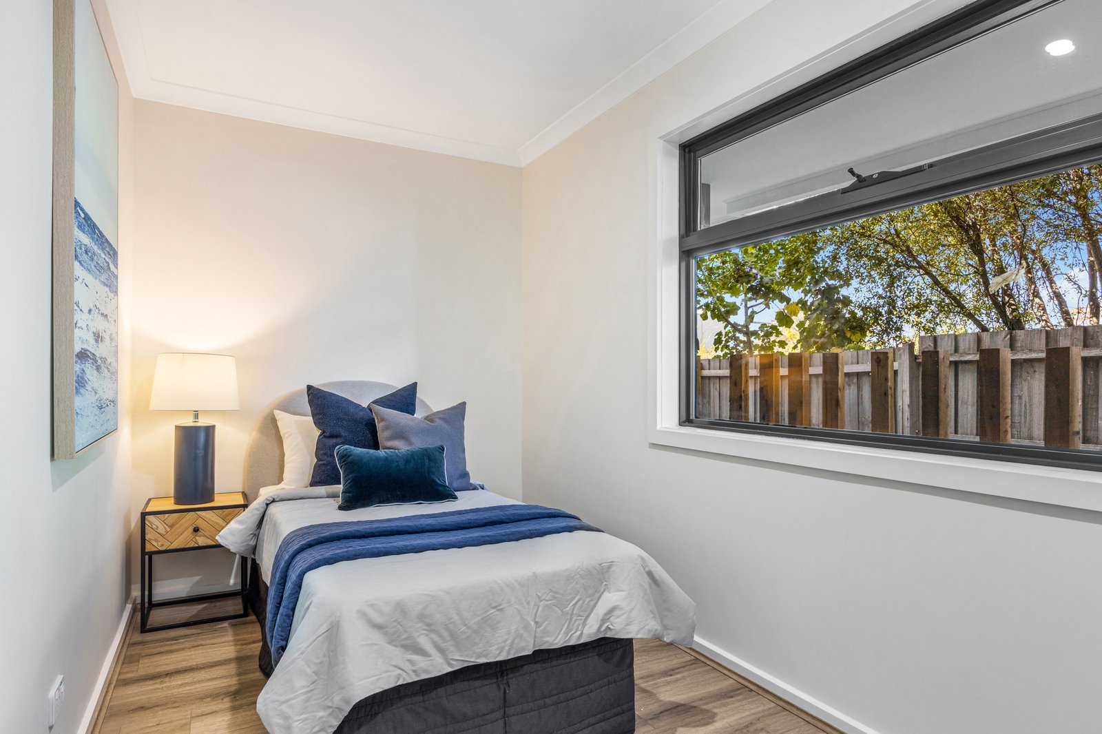 The upper level is dedicated to rest and retreat, offering two well-appointed bedrooms and a beautifully finished central bathroom. Additional highlights include split-system heating and cooling, solar hot water, a European-style laundry and a secure single garage.