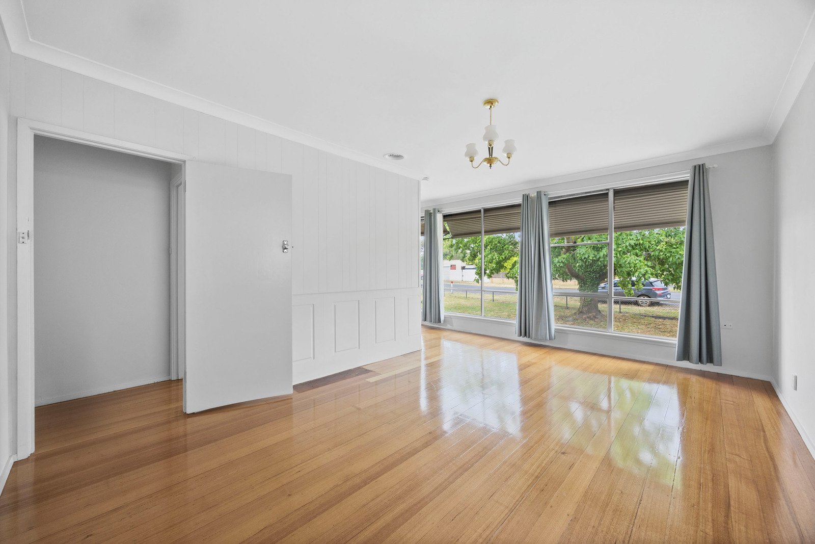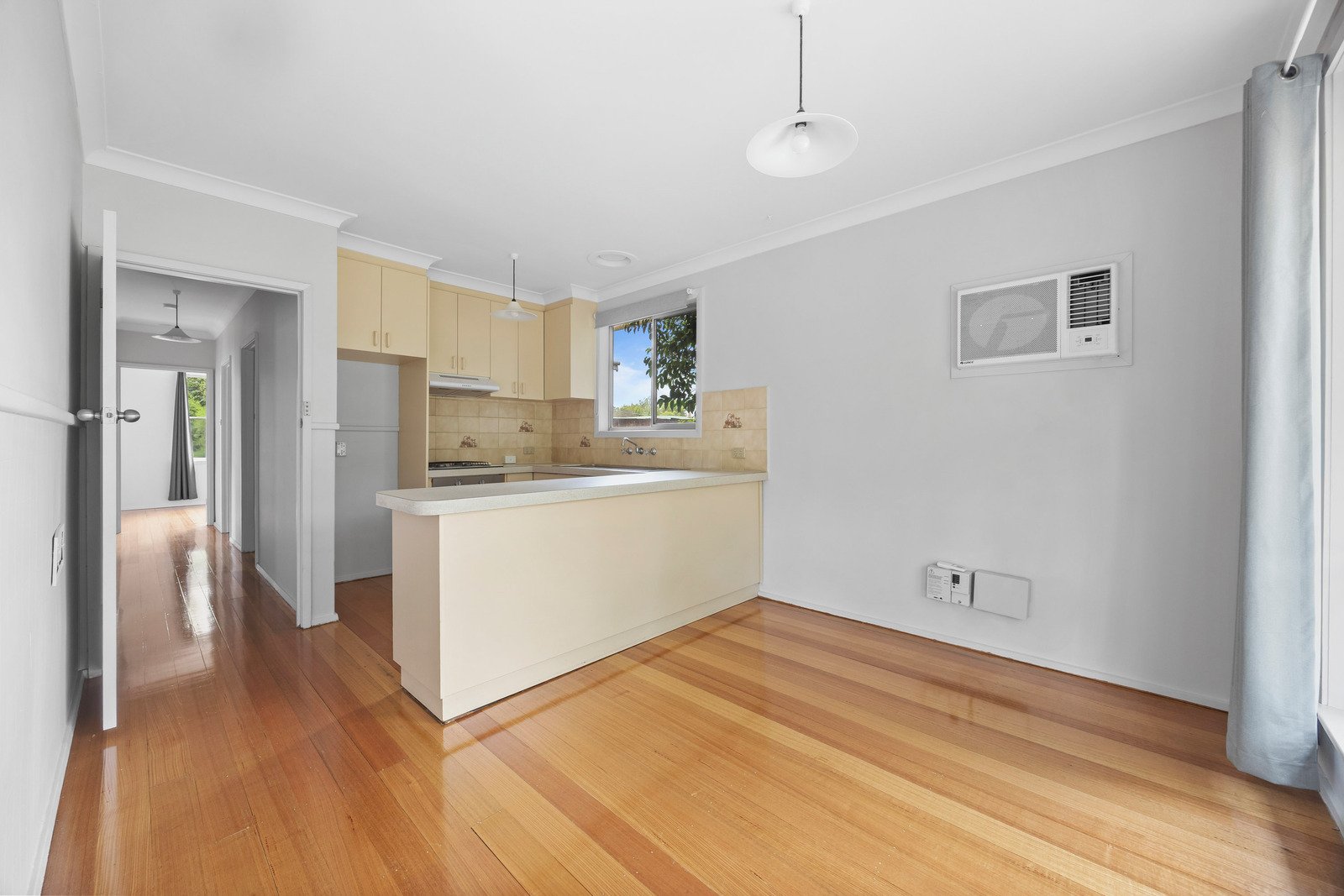- Living area with polished floorboards