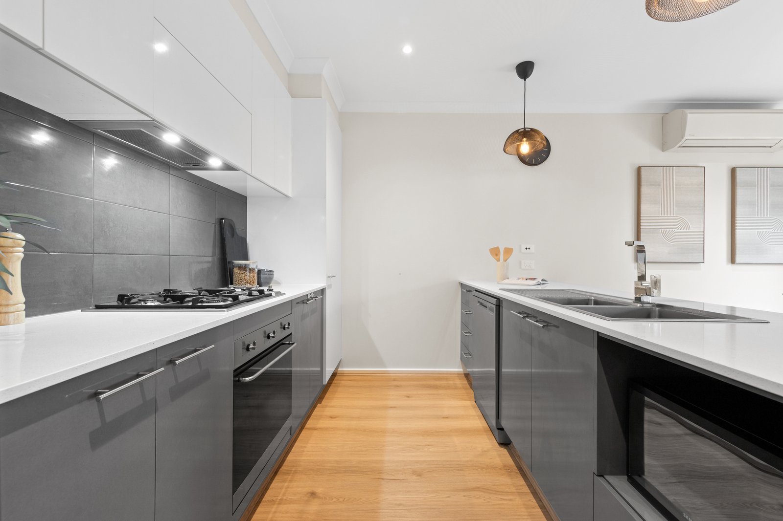 Step outside to the beautifully landscaped backyard, where the decking creates an ideal spot for weekend BBQs, or simply relaxing in the fresh air. Additional highlights include two split system air conditioners, an intercom and security system for added peace of mind, a convenient European laundry, and a remote-controlled double garage.