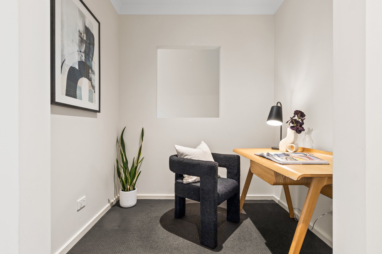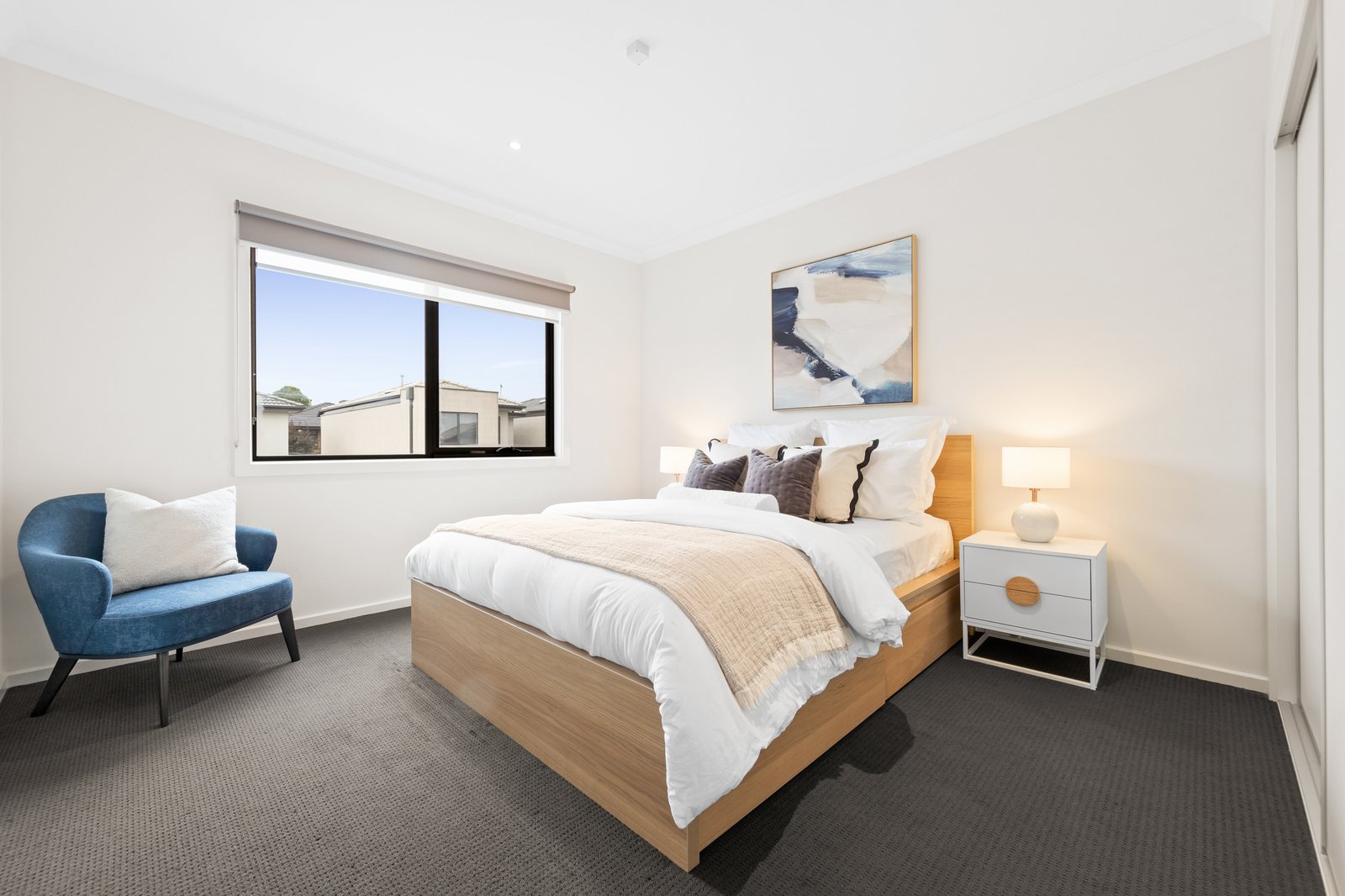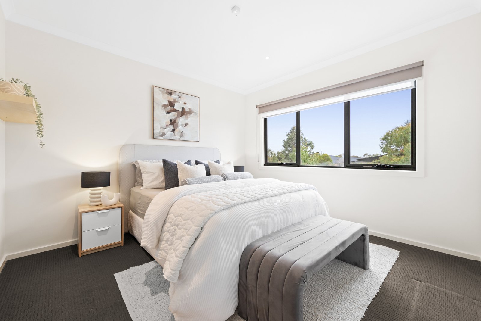 Upstairs, a peaceful retreat opens directly onto a private balcony overlooking the reserve, an ideal spot to unwind. A dedicated study/office adds flexibility for remote work or creative pursuits. The master bedroom features a walk in robe and ensuite, while two additional bedrooms with built in robes are serviced by a sleek central bathroom.