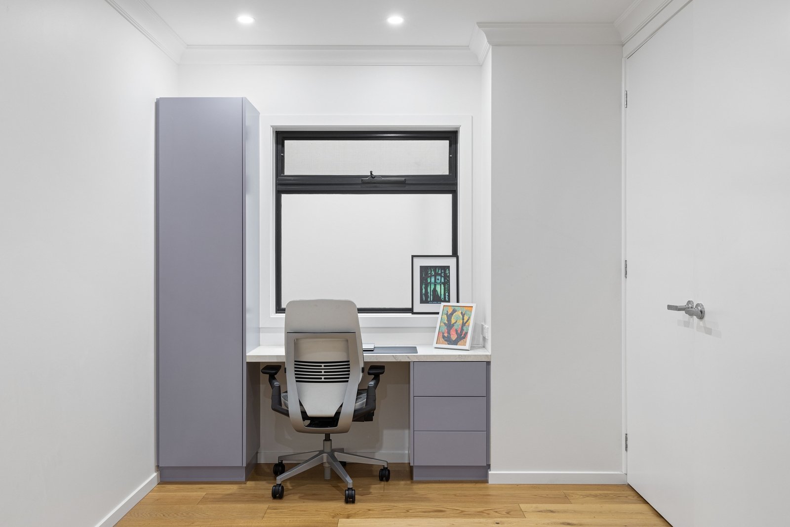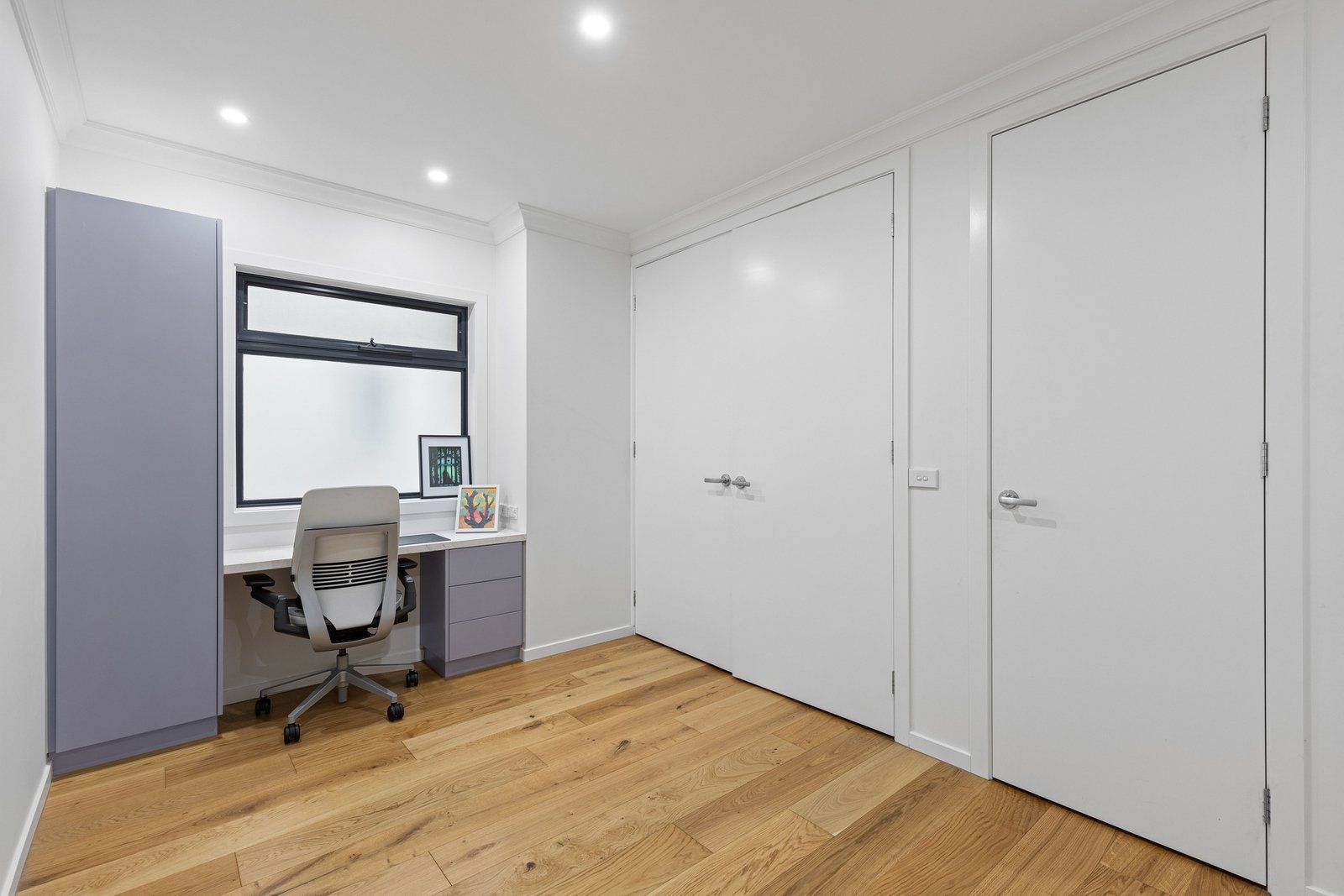 A separate secondary living zone adds excellent flexibility, incorporating a dedicated study nook—ideal for working from home, quiet relaxation or an additional sitting area away from the main living space.