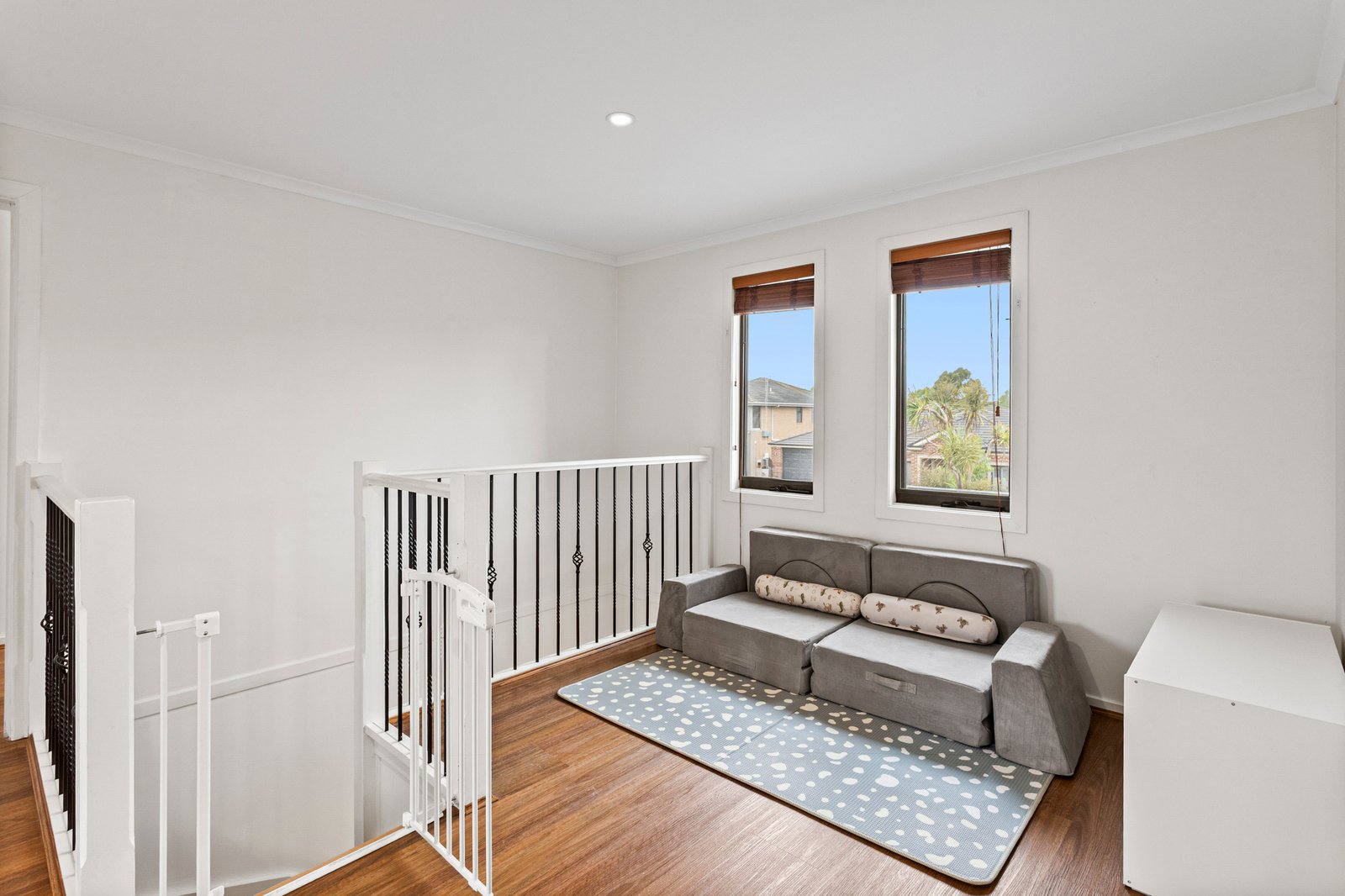 Upstairs, a cozy retreat offers a quiet escape, the master bedroom complete with built in robe and a private ensuite. Two additional bedrooms, each fitted with built in robes, are serviced by a central bathroom, ensuring comfort for the whole family. Outdoor living is equally impressive, with a decked alfresco area perfect for gatherings, weekend barbecues or simply unwinding in the fresh air. The lawn provides the space for kids at play or pets to roam.