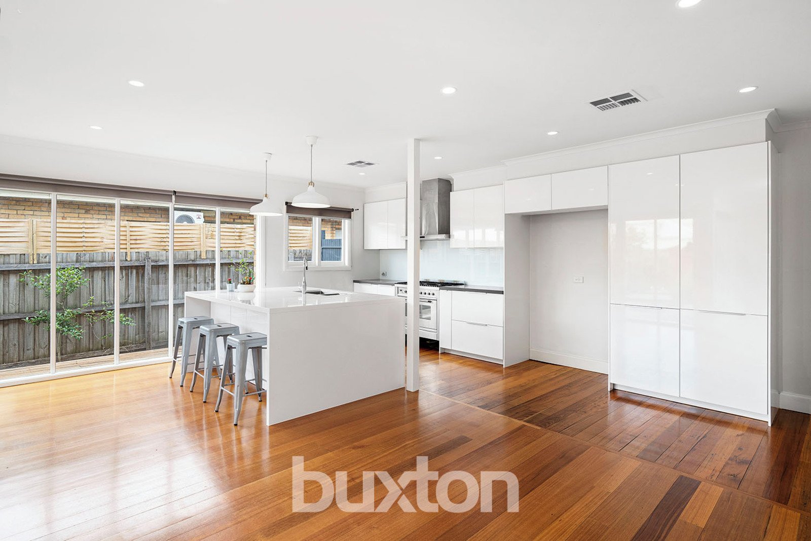 Polished timber floorboards enhance the light-filled interiors, while the contemporary kitchen with island bench forms the heart of the home, seamlessly connecting to the living and dining spaces. French doors open to a private outdoor setting, ideal for relaxed entertaining. Updated bathrooms, a charming decorative fireplace, and central heating and cooling ensure year-round comfort. Freshly painted walls & new Blinds.