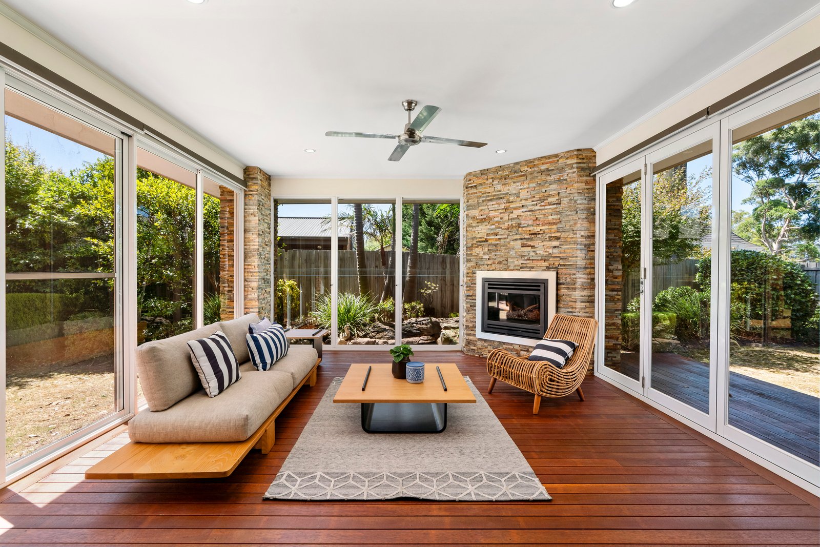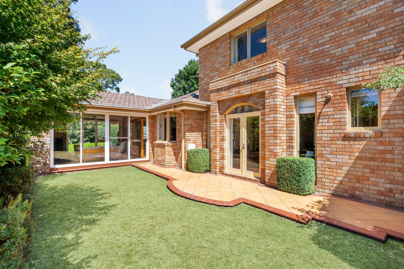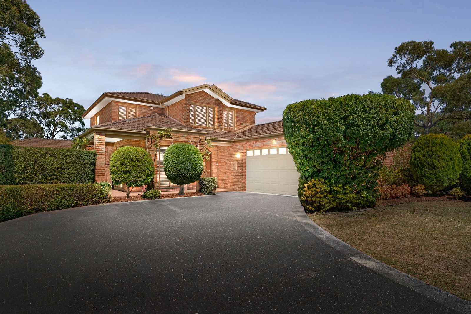 Family living unfolds across a Spotted Gum family room, a tiled dining hall and a private corner rumpus. A tranquil waterfall pond promises absolute serenity from the enclosed sunroom – the perfect retreat from which to admire the stately hedged gardens.