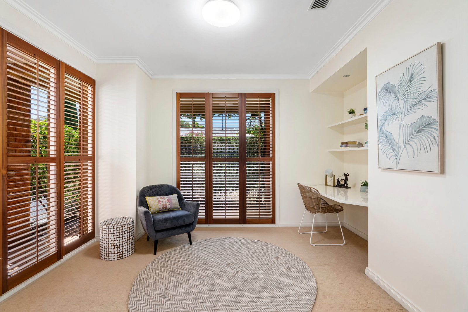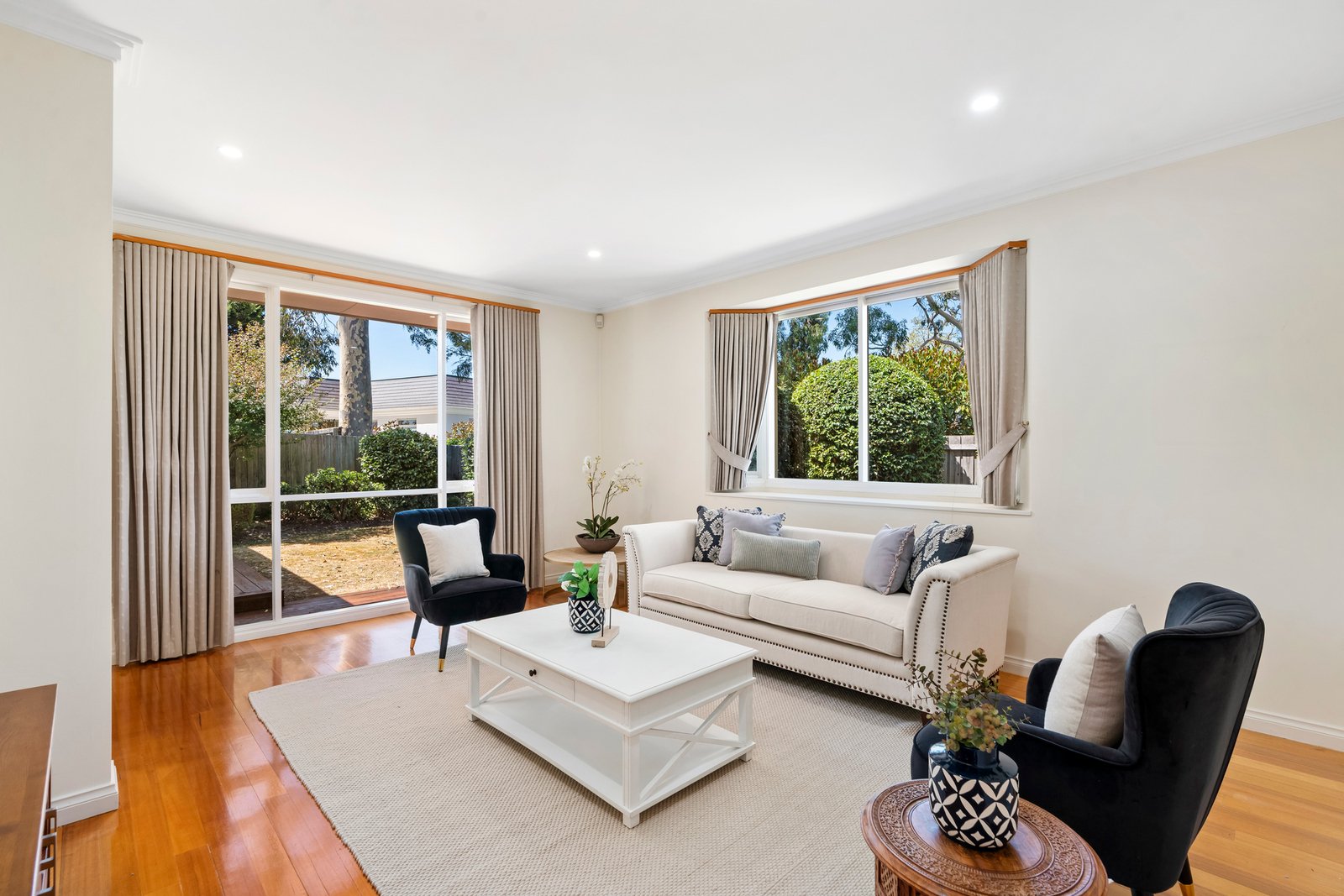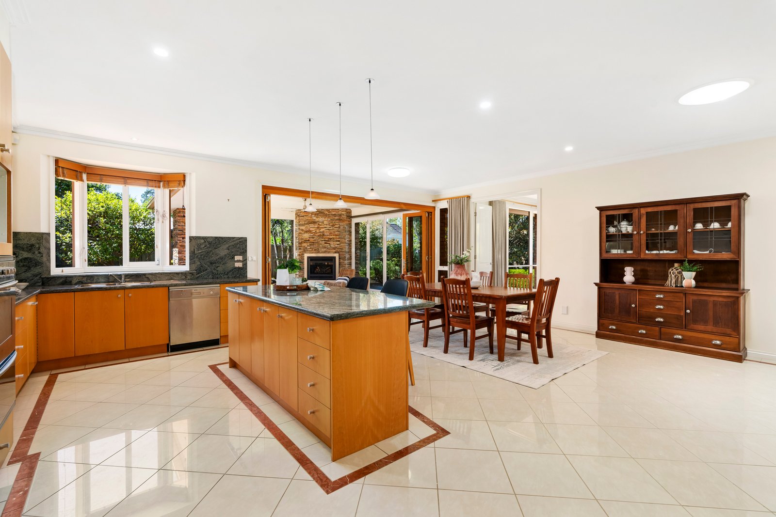As you move across the home’s grand expanse, you can’t help but notice the immaculate presentation and the signature design elements. Picture windows frame the garden. Coffered ceilings bring refinement. Leadlight windows add artistry.