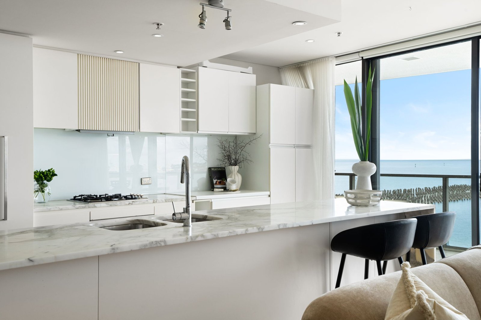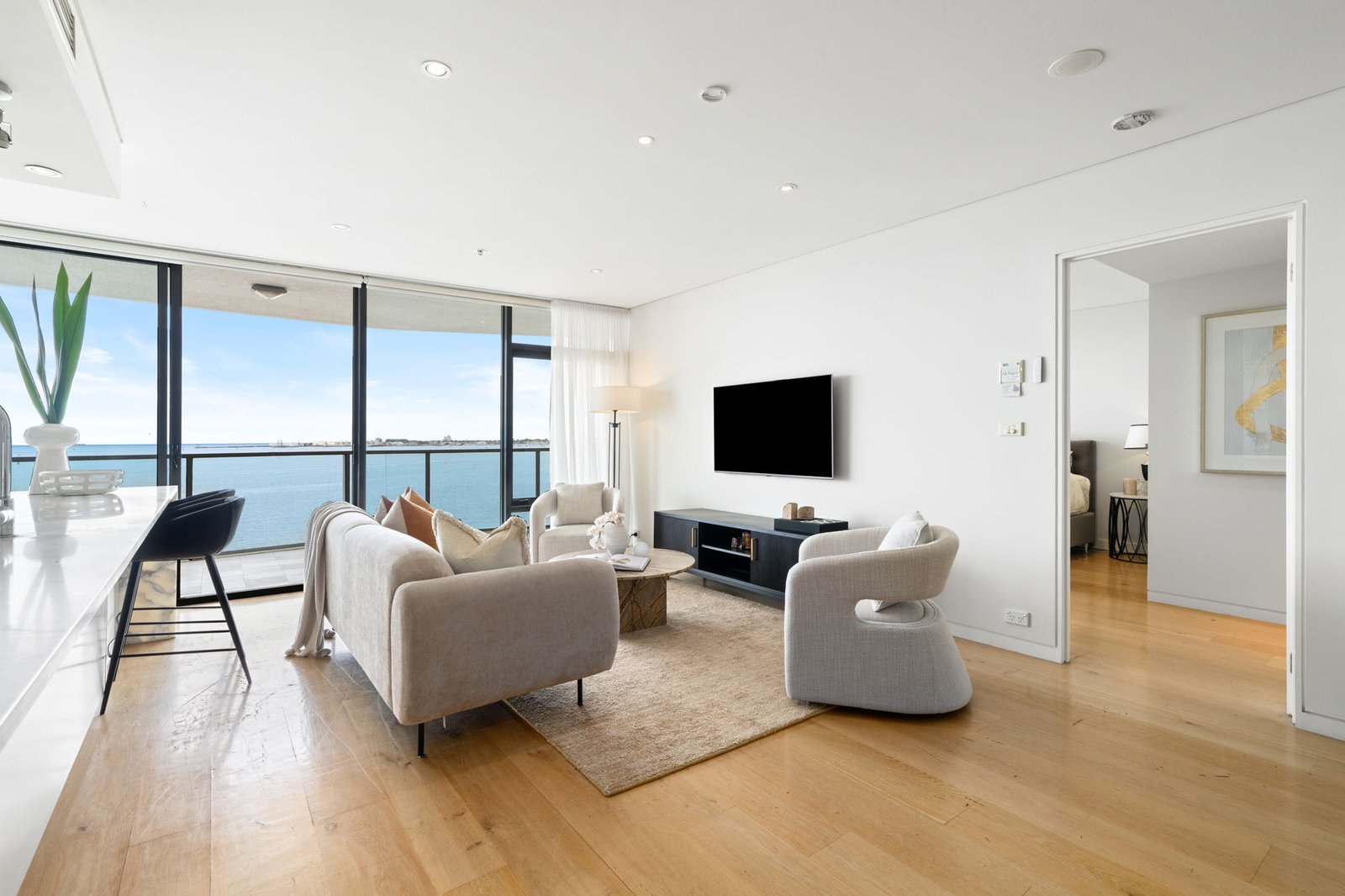 Enjoy uninterrupted bay and beach views from this luxurious contemporary apartment, where generous open-plan living and dining spill onto an expansive terrace designed for year-round entertaining.