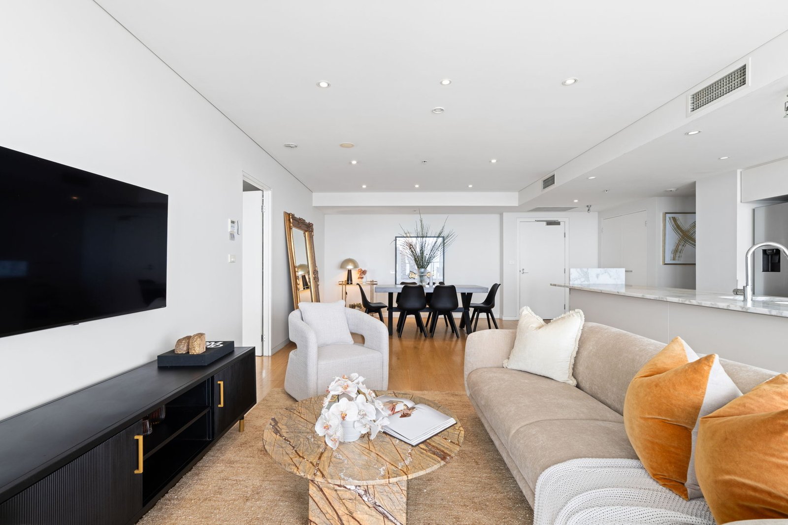 The marble-appointed kitchen features premium European appliances and tailored cabinetry, while the main bedroom offers a walk-in robe, marble ensuite...